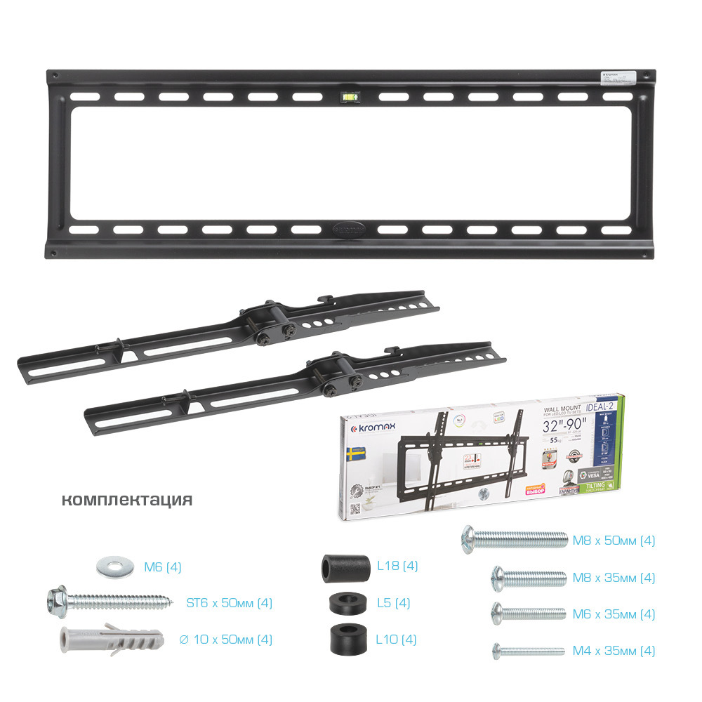 Кронштейн для телевизора настенный наклонный Kromax IDEAL-2, 32"-90" до 55 кг