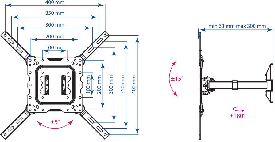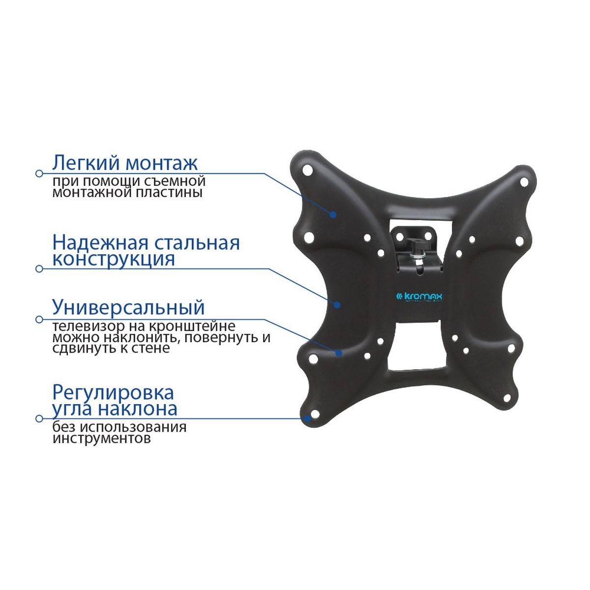Кронштейн наклонно-поворотный Kromax CASPER-104 10-26' до 15кг Vesa до 100x100 черный