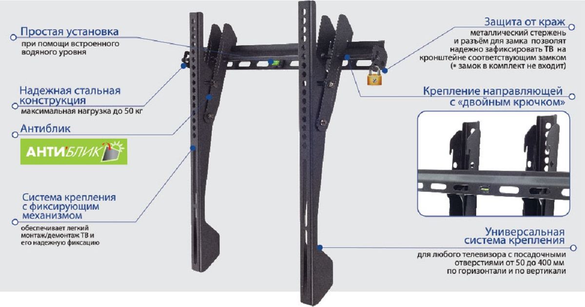 Кронштейн для телевизора настенный фиксированный Kromax STAR-11, 32"-90" до 60 кг