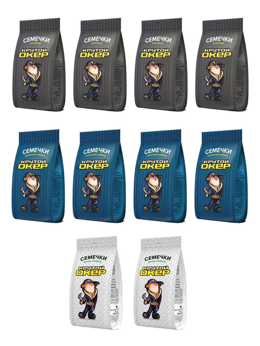 Крутой Окер семечки полосатые 4*70г, полосатые соленые 4*70г , белые 2*80г