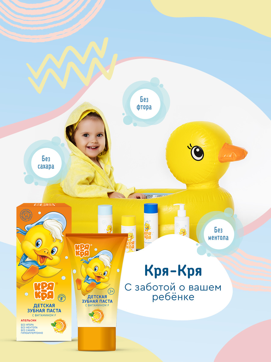 Детская зубная паста Кря-Кря с витамином F, Апельсин, 3+, 50 гр
