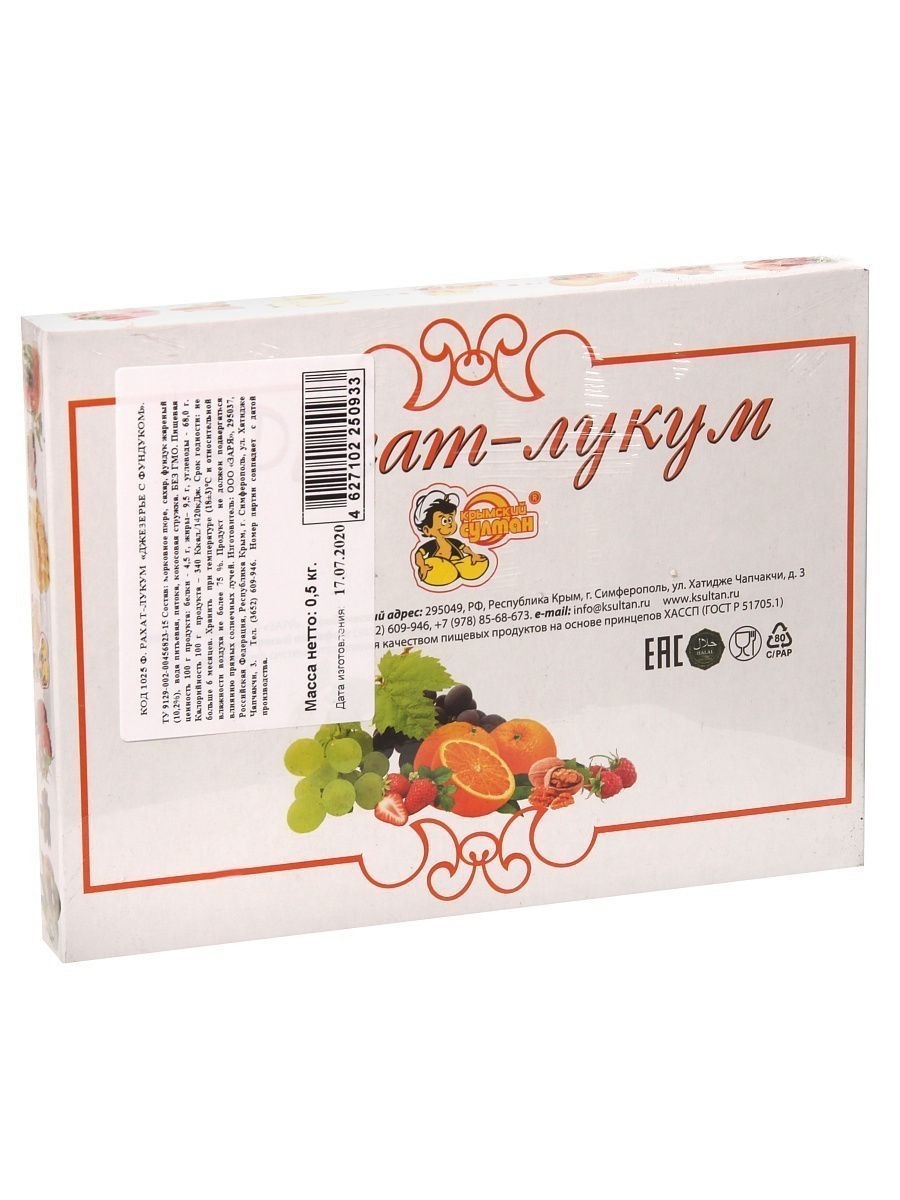 Крымский султан Рахат лукум "Джезерье с фундуком" кокосовая стружка, 500 г