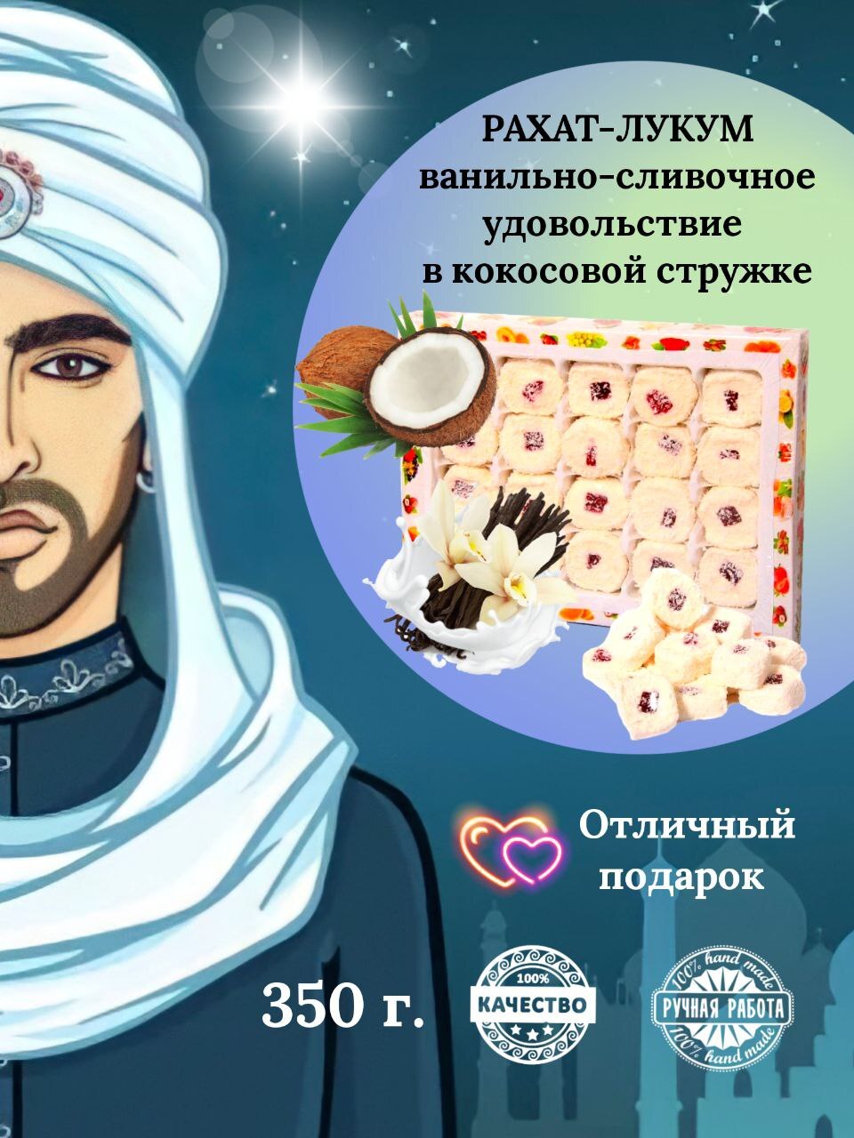 Крымский Султан Рахат лукум ванильно-сливочный "Фитиль" кокосовая стружка, 350 г