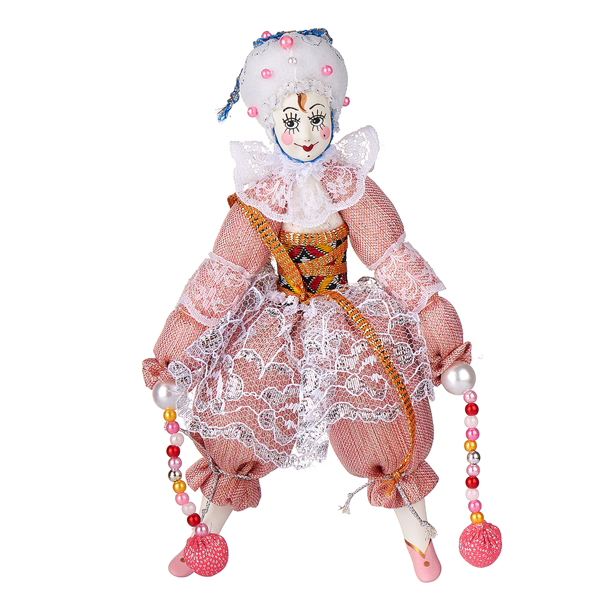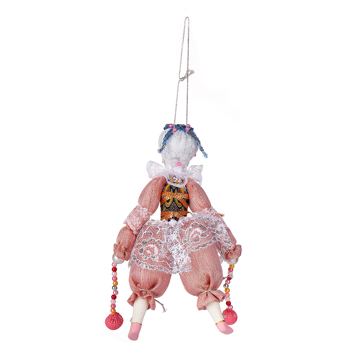 Ёлочная игрушка ручной работы "Клоунесса розовая в белом парике"