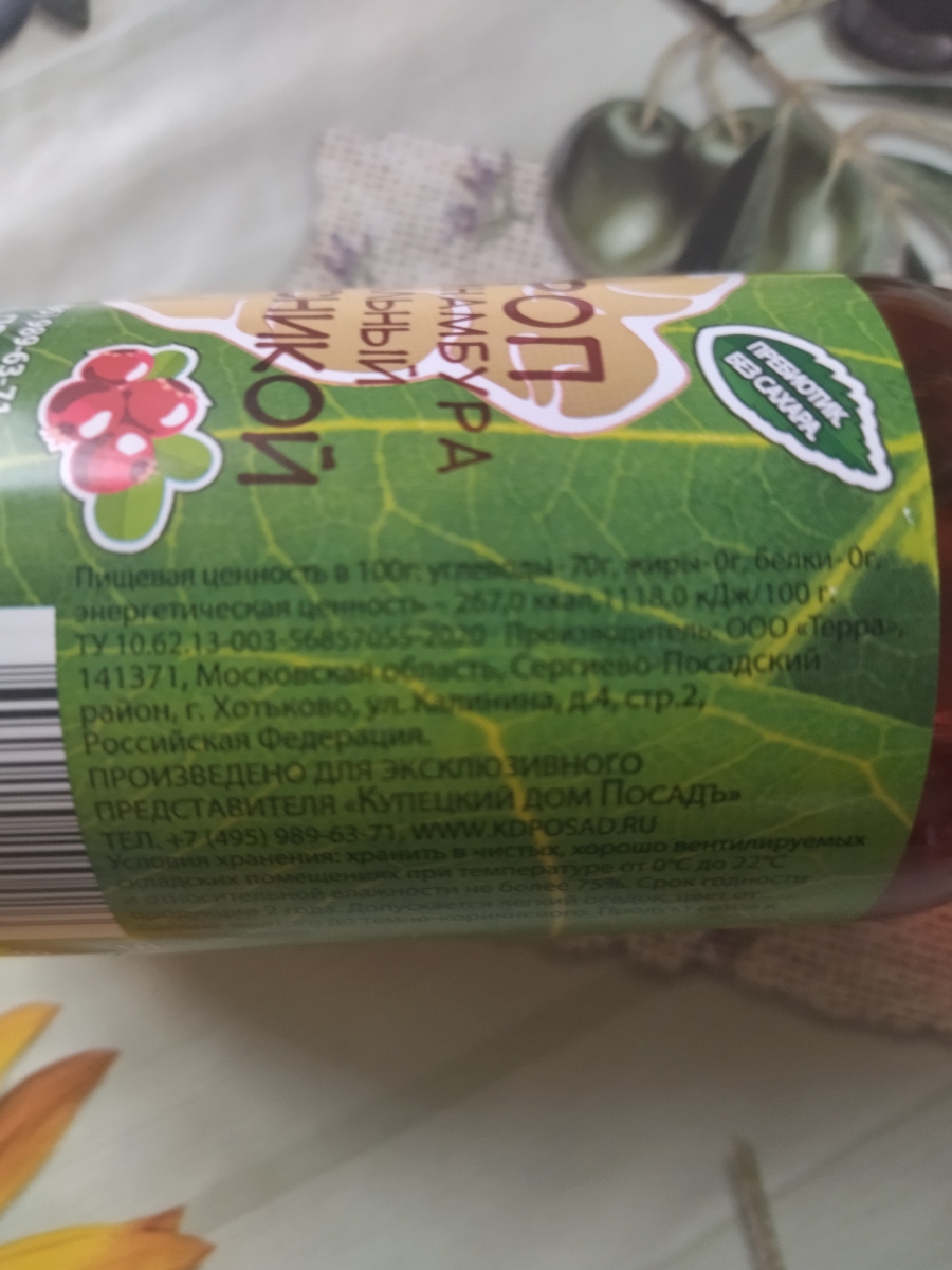 Сироп из клубней топинамбура с брусникой стекло 330г
