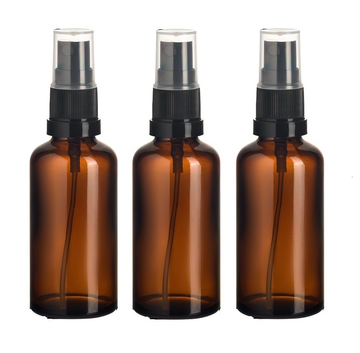 Флакон 50 мл стеклянный с черным спреем-распылителем. Набор 3 штуки.