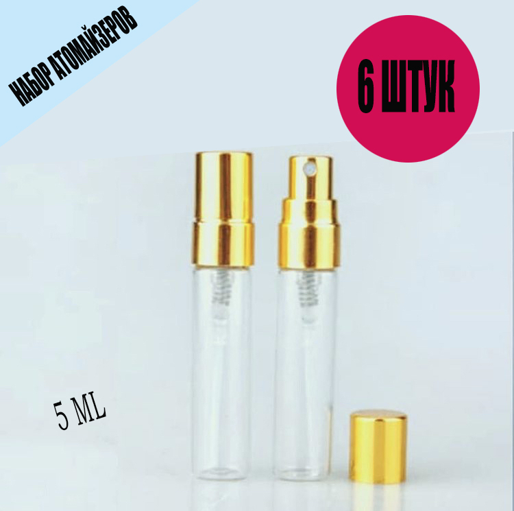 Флаконы для духов стекло, спрей металл золото 5 ml набор 6 шт