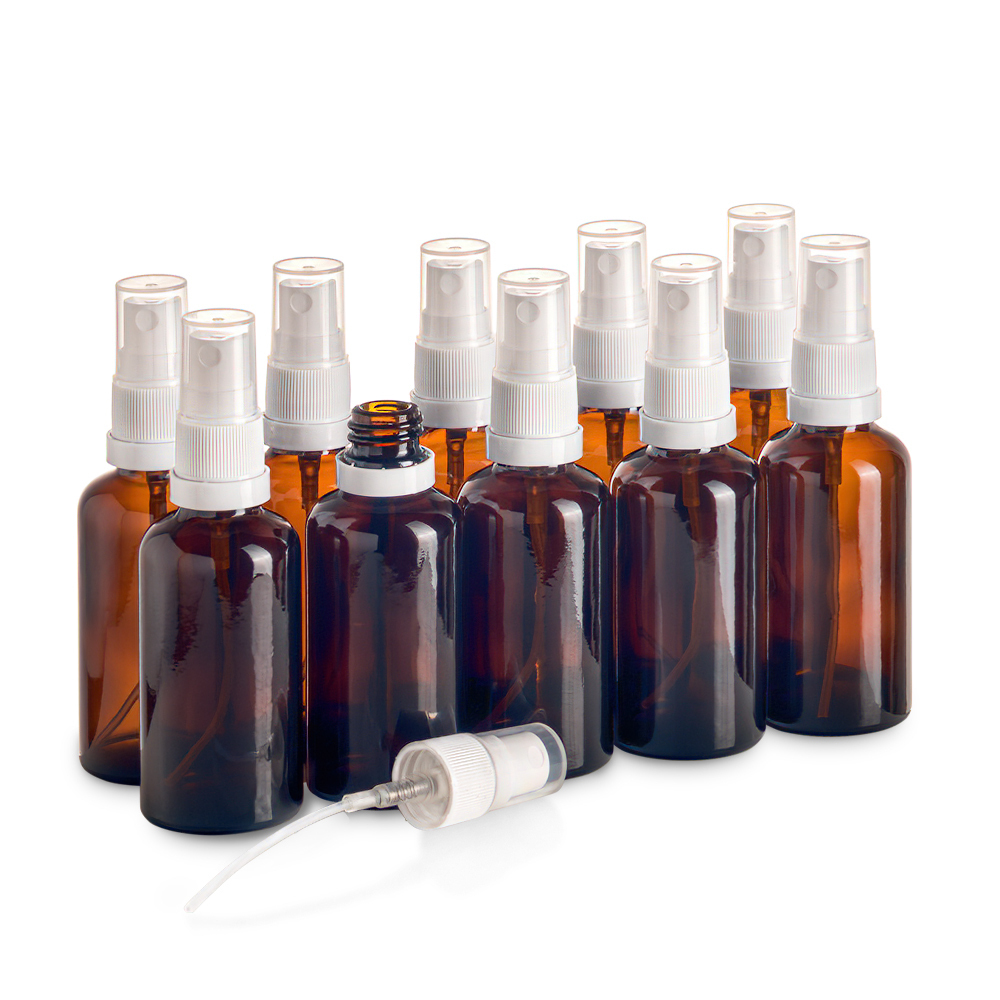 Флакон 50 мл стеклянный с белым спреем-распылителем. Набор 10 штук.