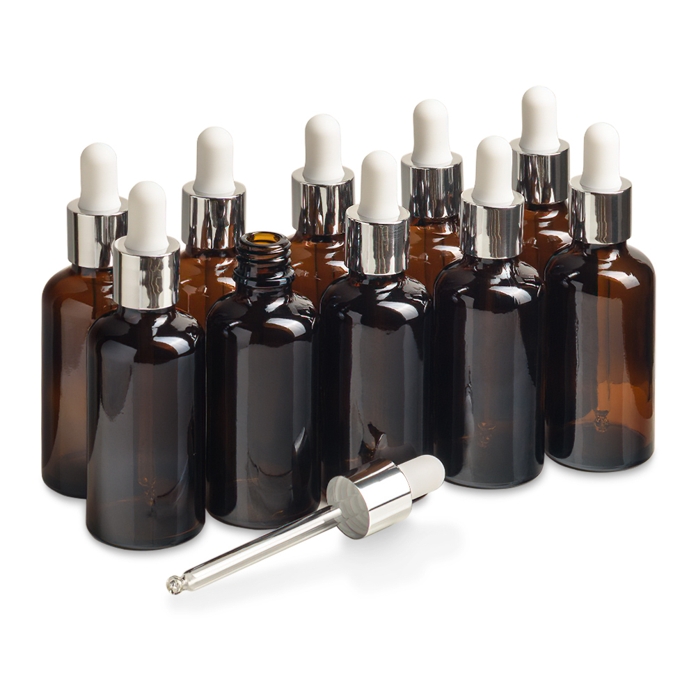 Флакон 50 мл стеклянный с крышкой с пипеткой. Набор 10 штук.