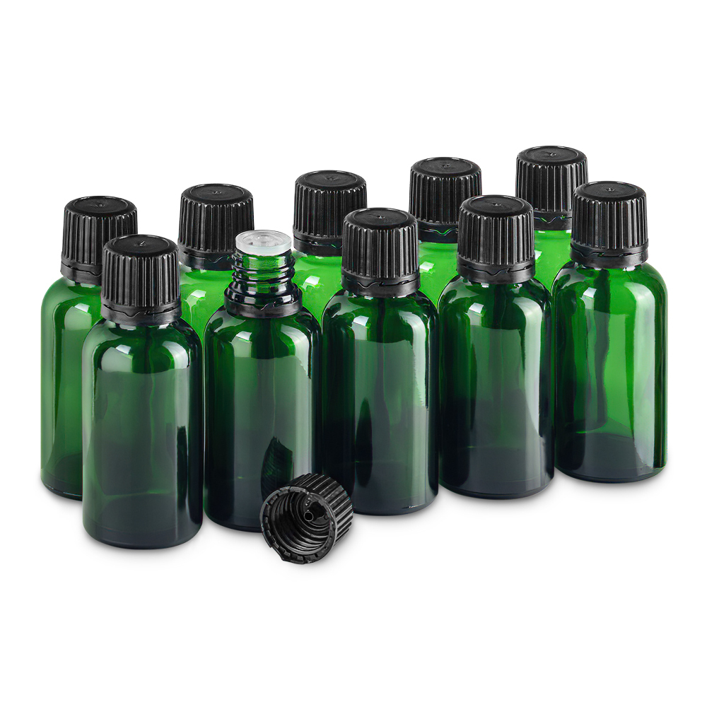 Флакон 30 мл стеклянный с крышкой с капельницей. Набор 10 штук.