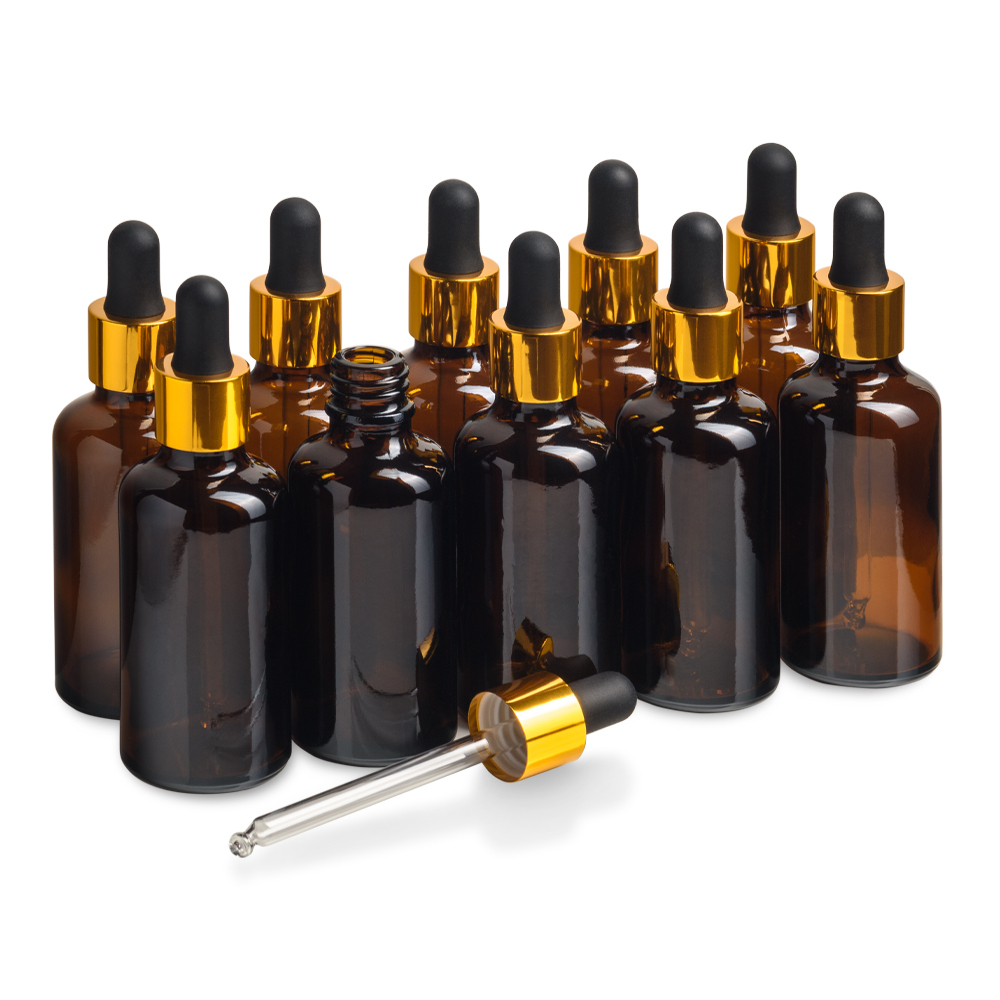 Флакон 50 мл стеклянный с крышкой с пипеткой. Набор 10 штук.