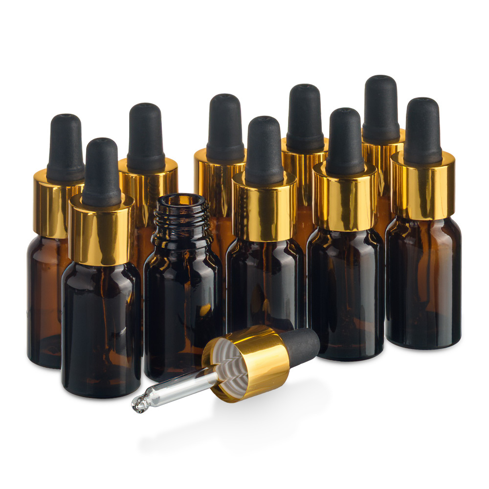 Флакон 10 мл стеклянный с крышкой с пипеткой. Набор 10 штук.