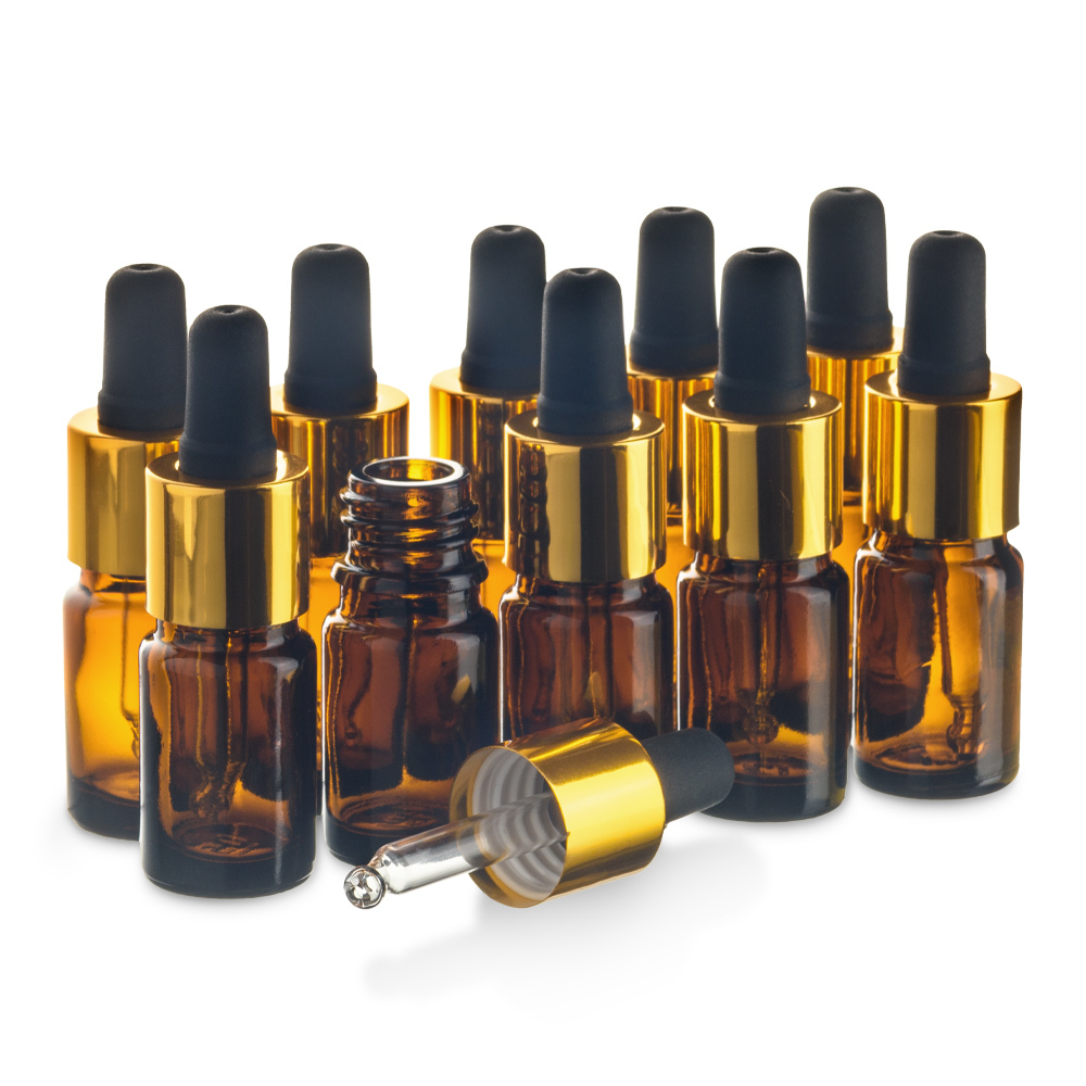 Флакон 5 мл стеклянный в комплекте с крышкой с пипеткой. Набор 10 штук.