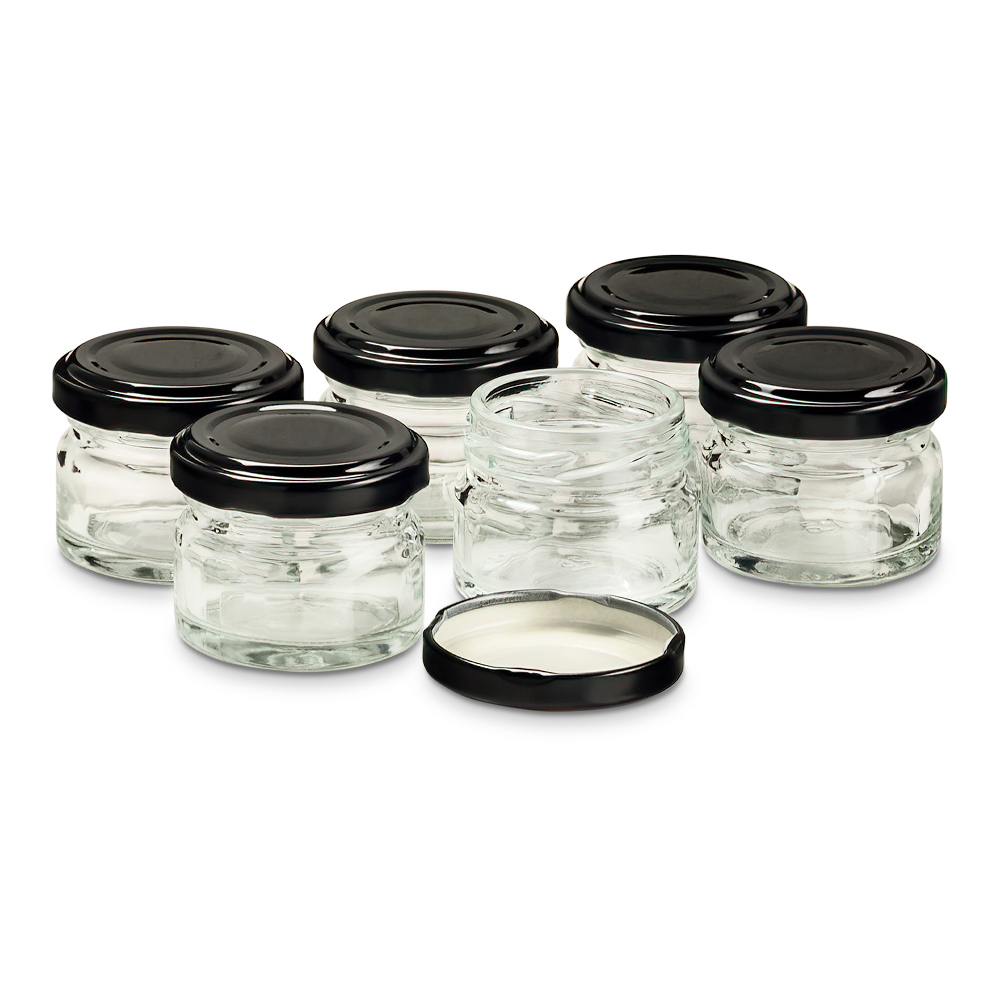 Банка 25 мл стеклянная круглая с крышкой. Набор 6 штук.