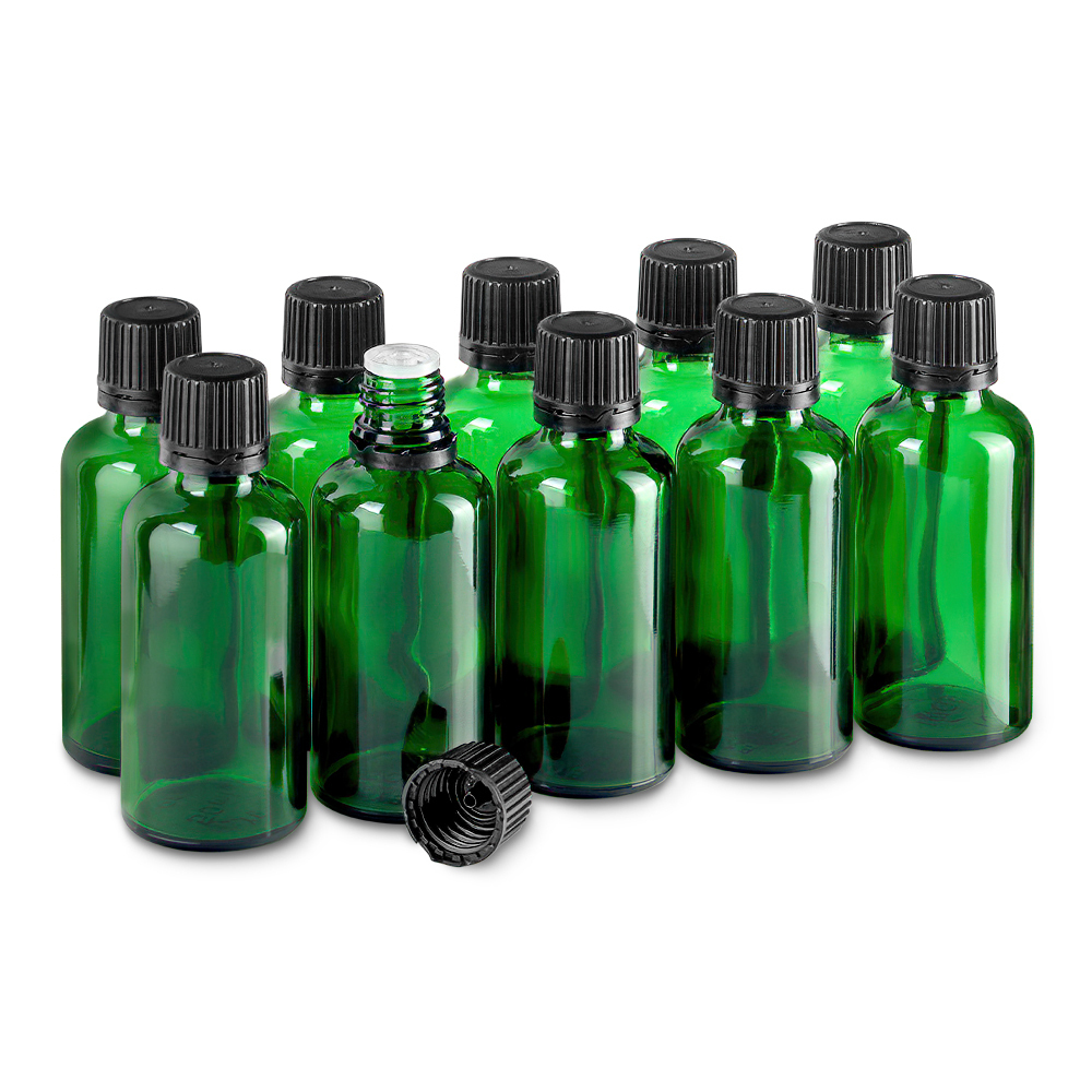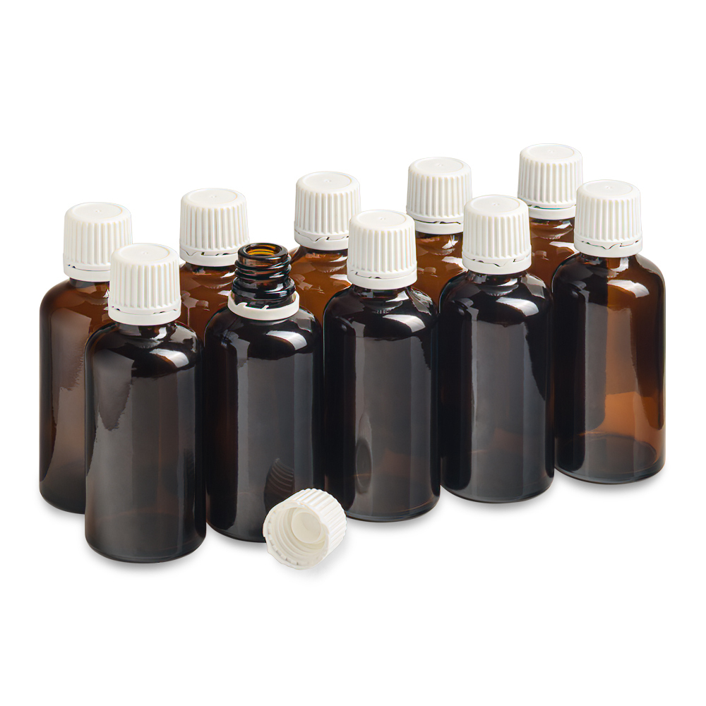 Флакон 50 мл стеклянный с крышкой с капельницей. Набор 10 штук.