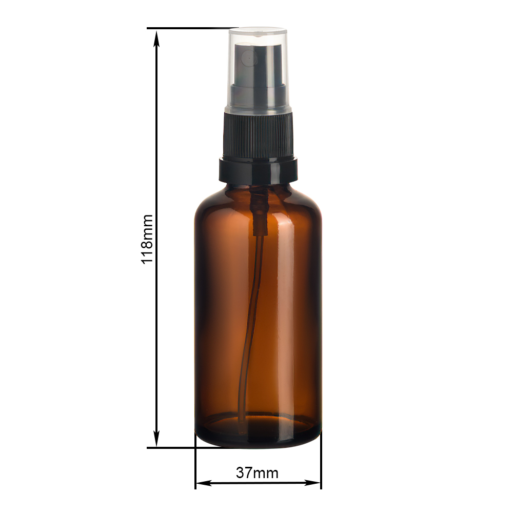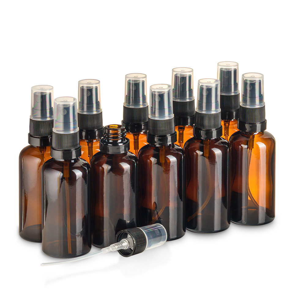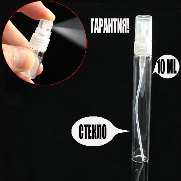 Флакон 50 мл стеклянный с черным спреем-распылителем. Набор 10 штук.