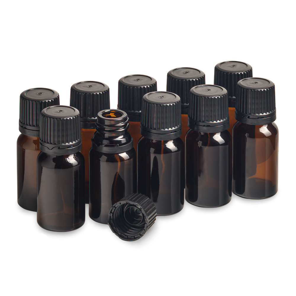 Флакон 10 мл стеклянный с крышкой с капельницей. Набор 10 штук.