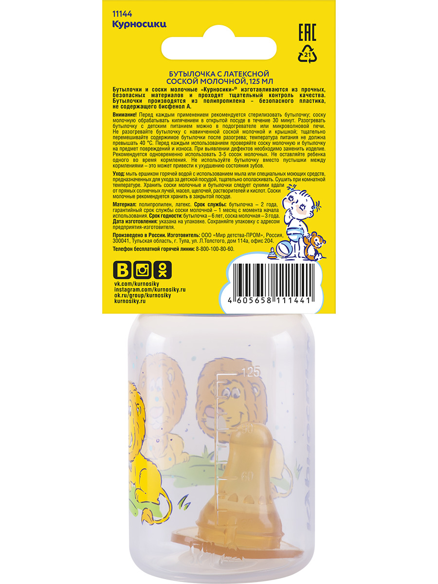 Бутылочка для кормления Курносики, с соской, 125 мл