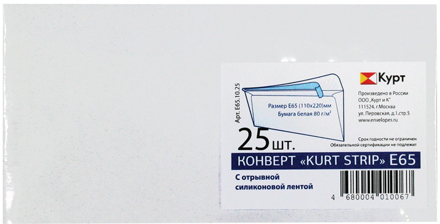 Конверт Курт и К KurtStrip, без подсказа, без окна, E65, белый, 25 шт