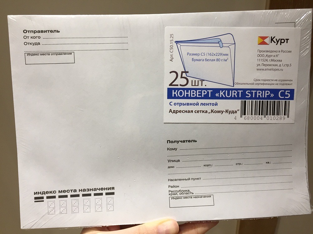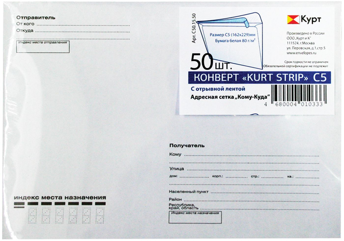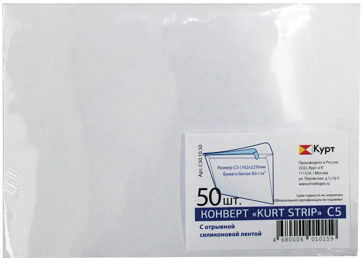 Конверт Курт и К KurtStrip, без подсказа, без окна, C5, белый, 50 шт