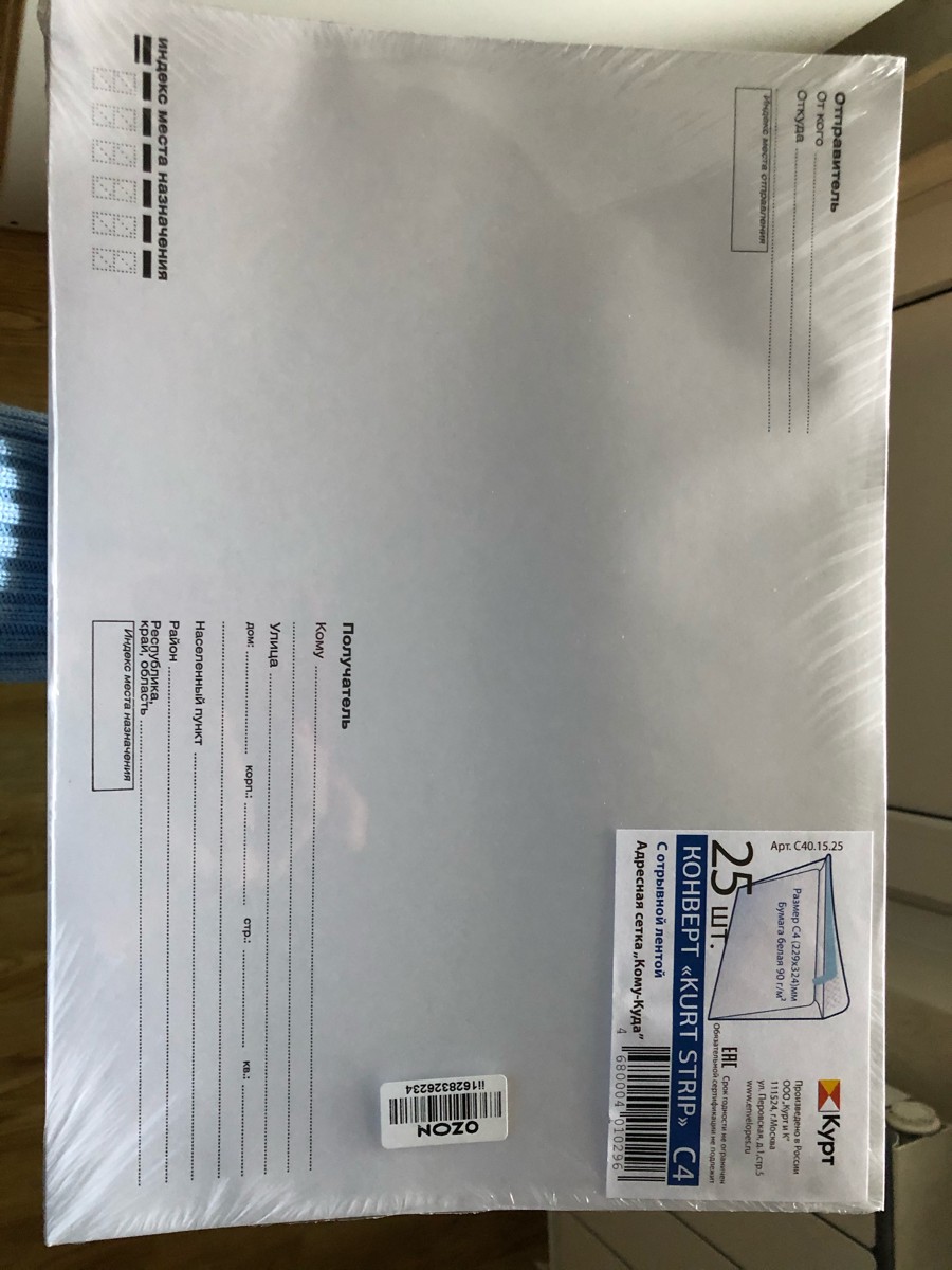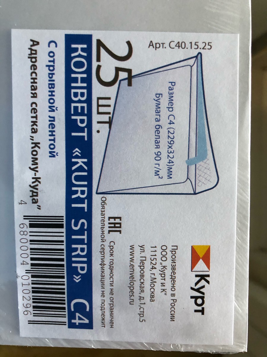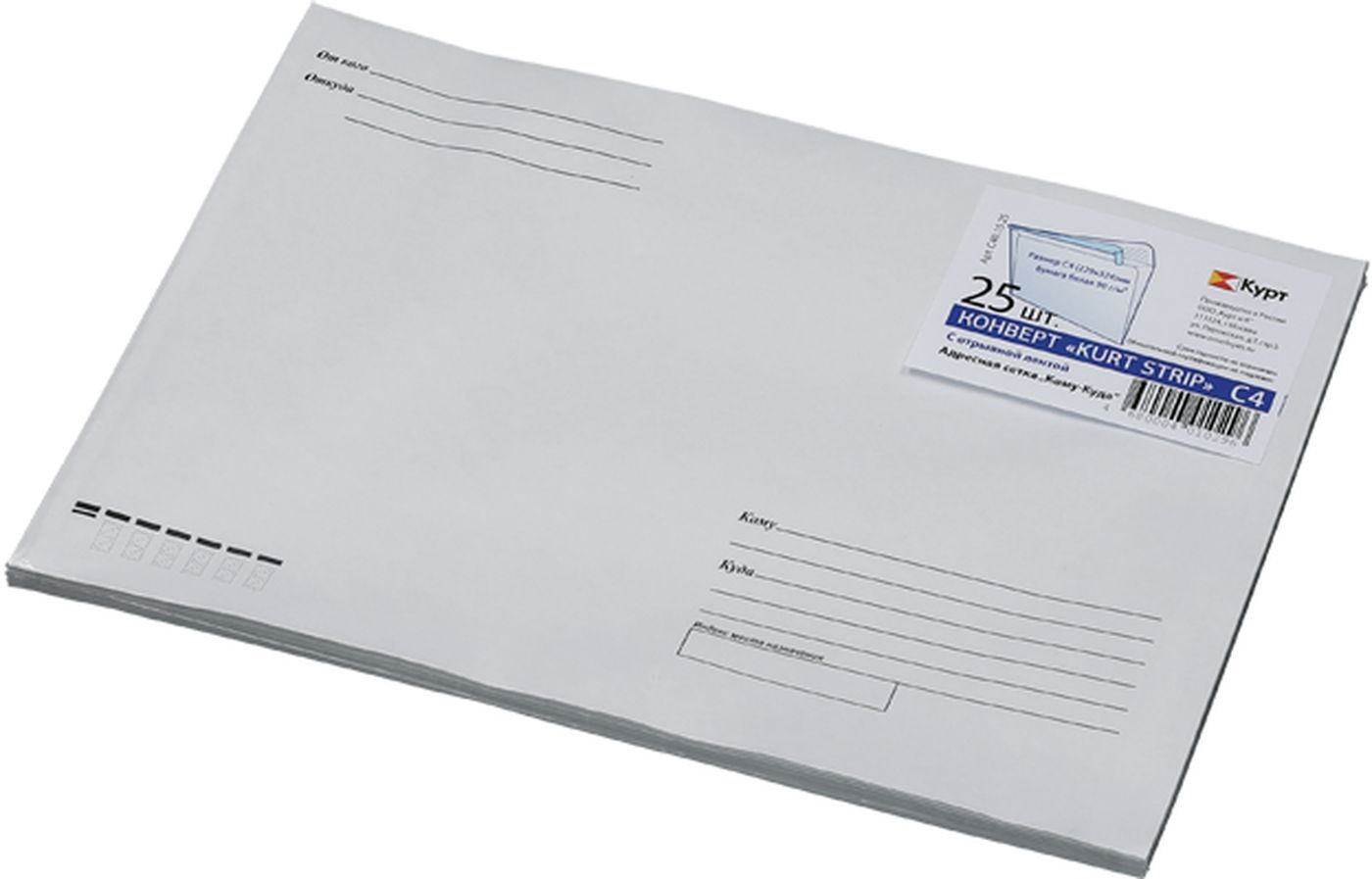 Конверт Курт и К KurtStrip, с подсказом, без окна, C4, белый, 25 шт