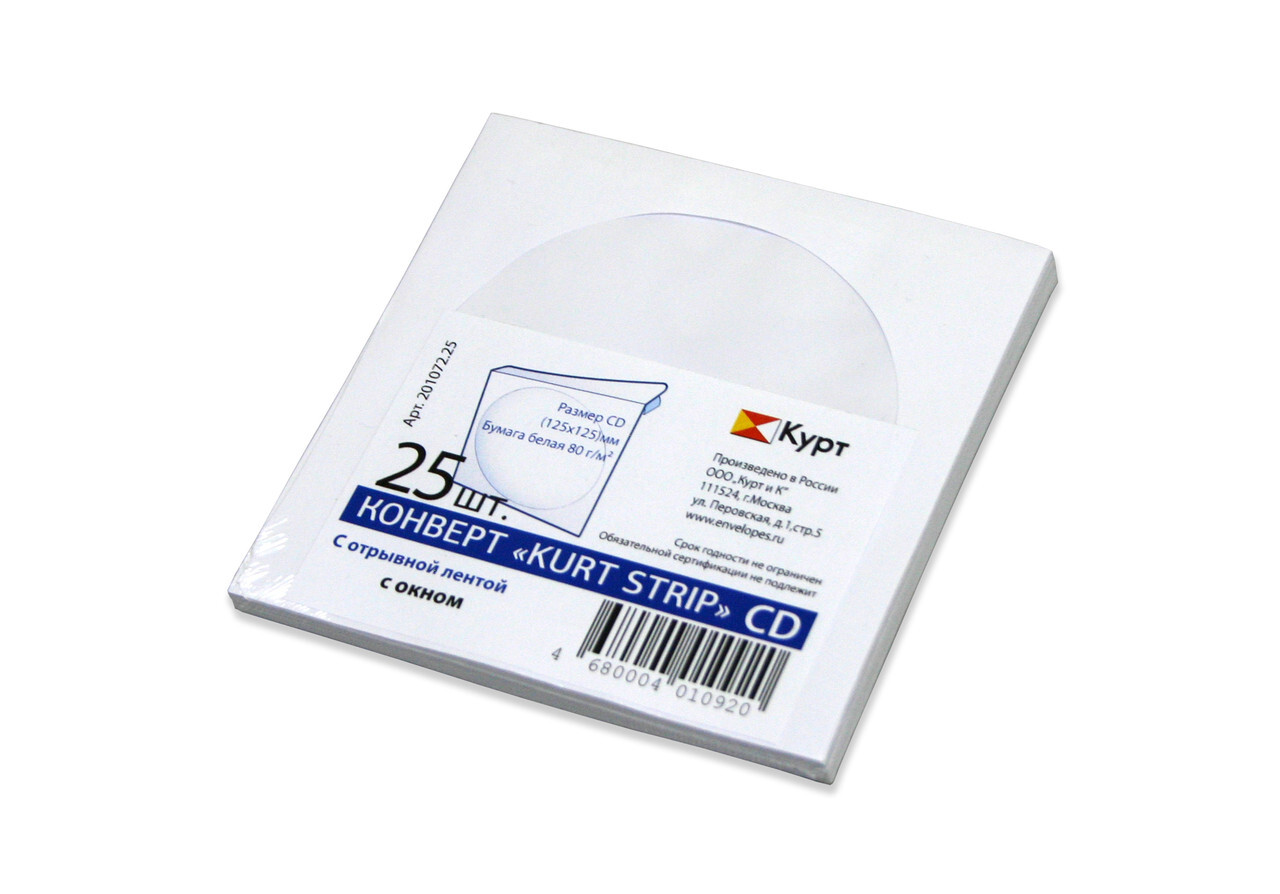 Конверт Курт и К KurtStrip, для CD, с окном, 125 х 125 мм, белый, 25 шт
