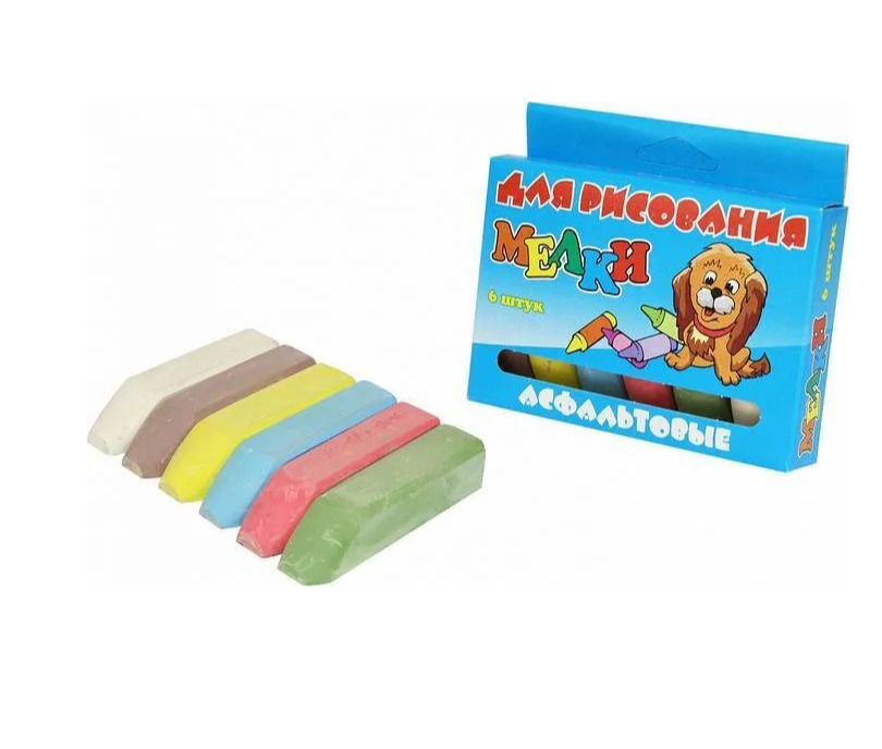 Цветные мелки "Квартет" для рисования на асфальте из 6 цветов,2 шт.