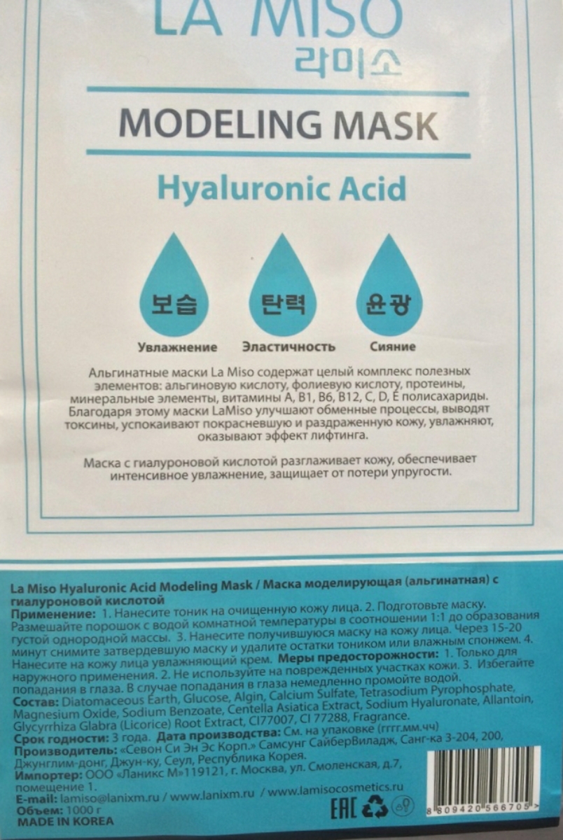 La Miso Маска моделирующая (альгинатная)с гиалуроновой кислотой