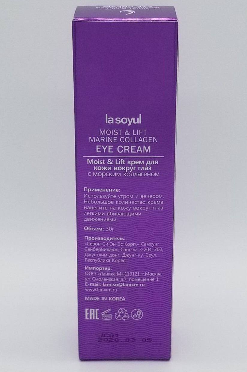 La Soyul La Soyul: Крем для кожи вокруг глаз с морским коллагеном, Moist and Lift Marine Collagen, 30 г