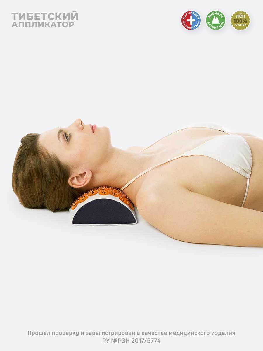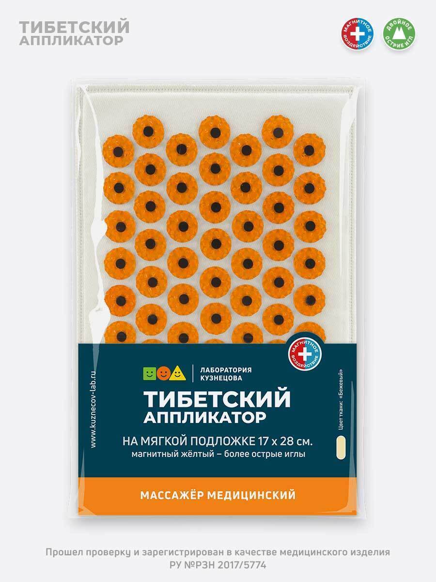 Тибетский аппликатор Лаборатория Кузнецова мягкий валик массажный акупунктурный для шеи, желтый (более острые иглы). Цвет ткани - "натуральный лён".