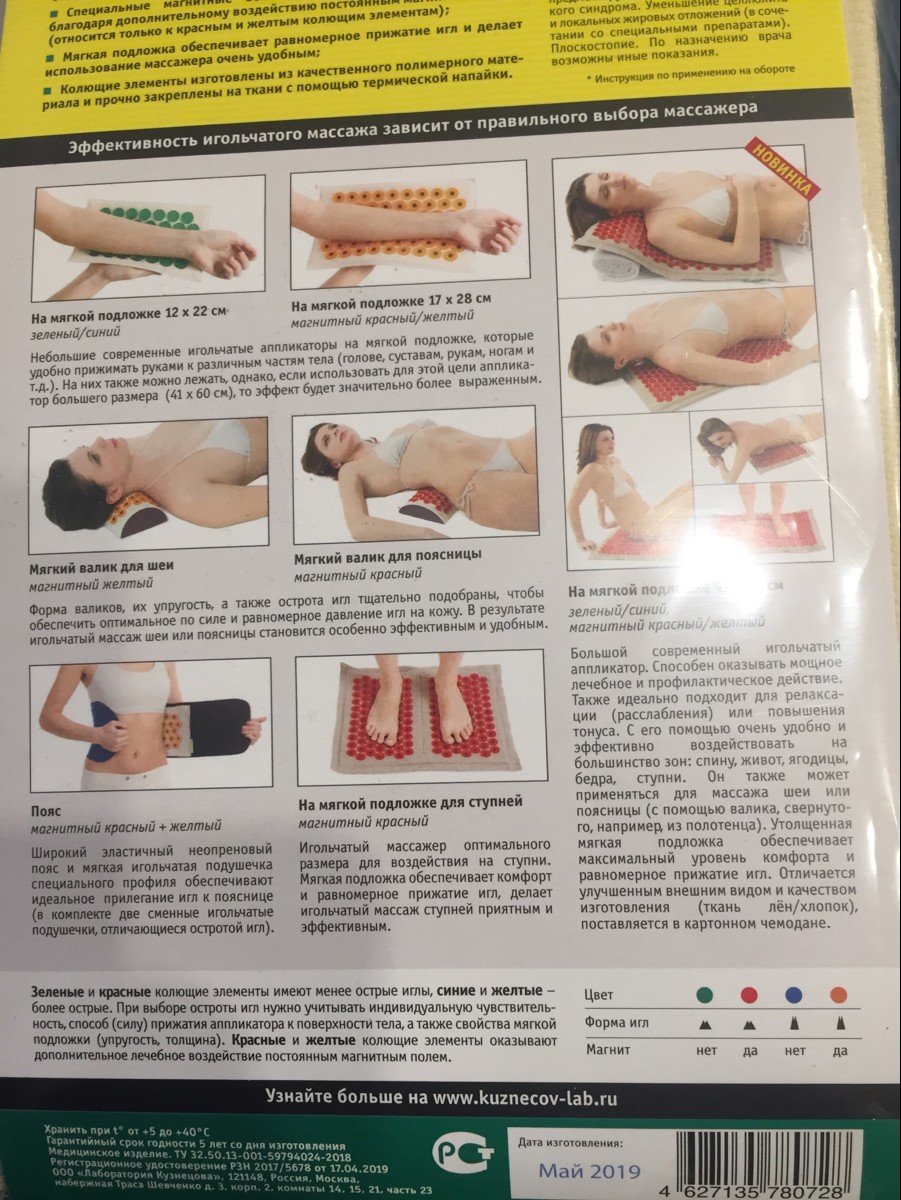 Акупунктурный массажный комплект из коврика и валика (аппликатор Кузнецова)