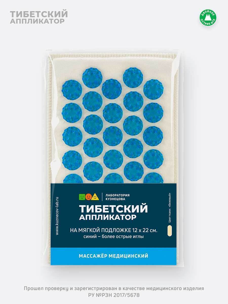 Тибетский аппликатор Лаборатория Кузнецова на мягкой подложке, наполнитель "комфорт" с эффектом памяти, более острые иглы, 41х60 см, синий