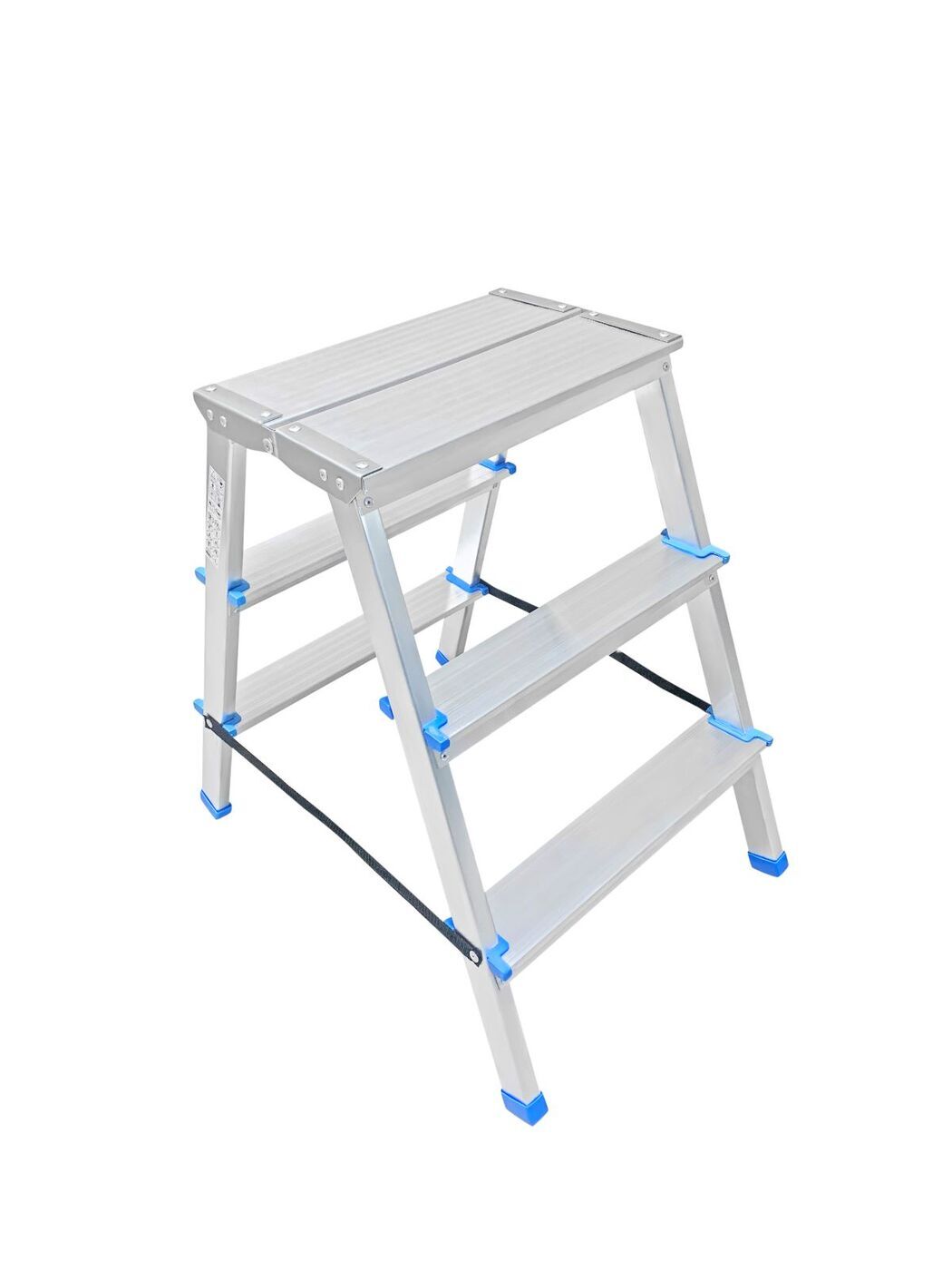 СТРЕМЯНКА АЛЮМИНИЙ 3 СТУПЕНИ ДВУХСТОРОННЯЯ (увеличенная площадка).