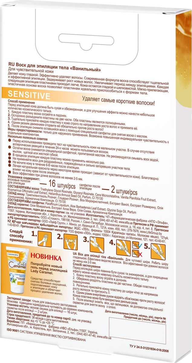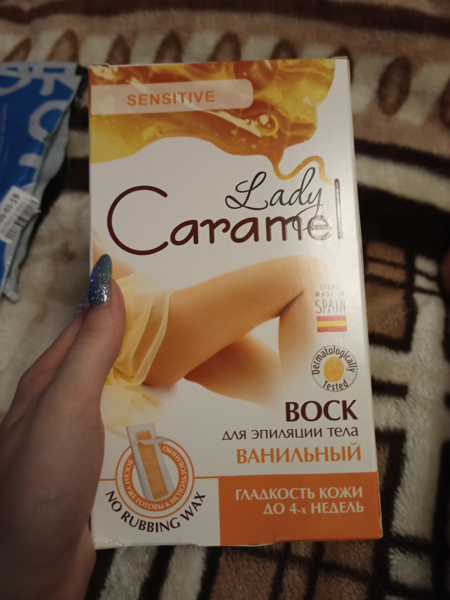Lady Caramel Воск для эпиляции тела "Ванильный", 16 полосок + 2 салфетки после эпиляции