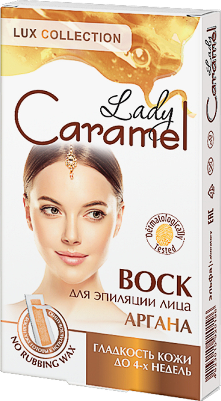 Lady Caramel Воск для эпиляции лица c маслом Арганы, 12 полосок + 2 салфетки