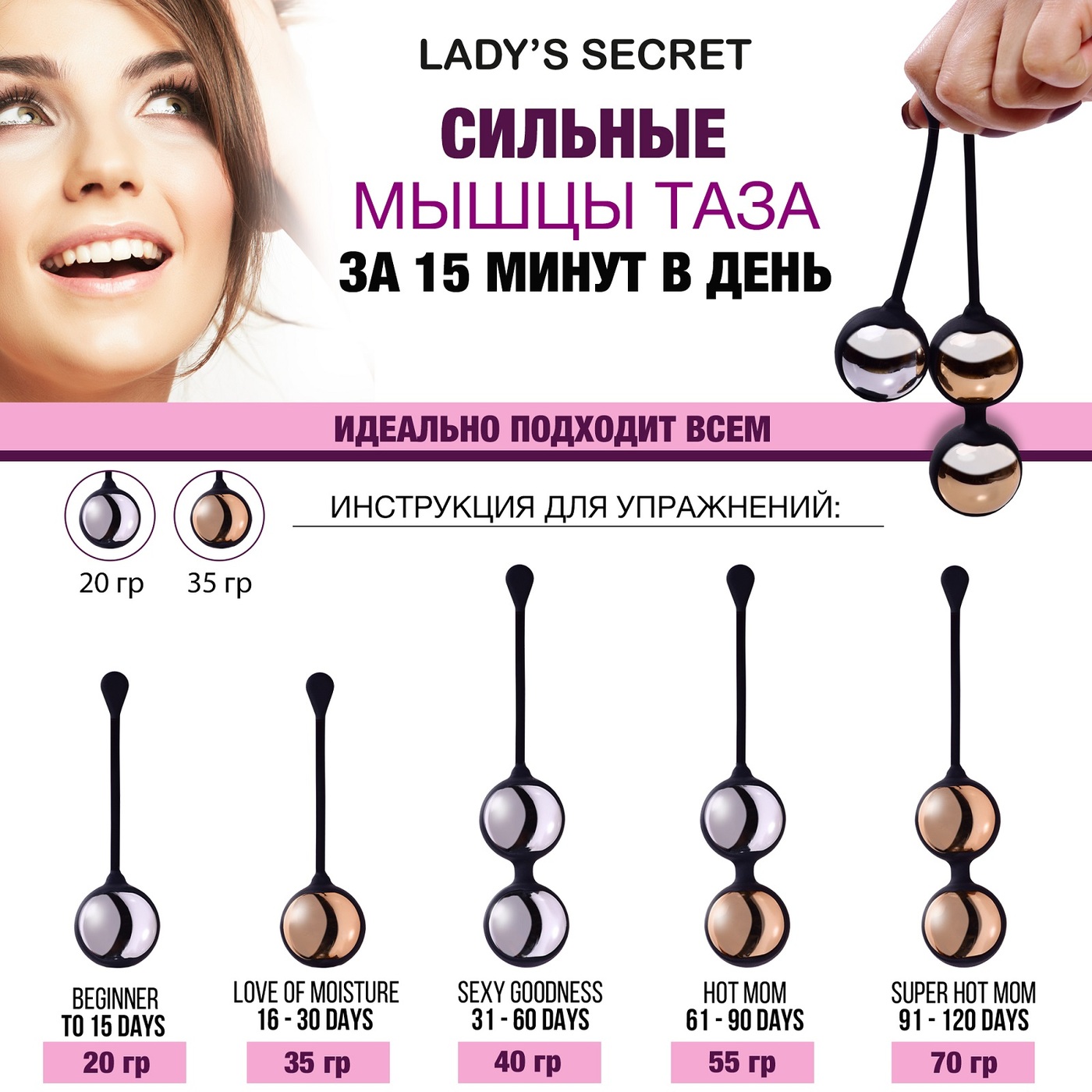 Вагинальные шарики LADY'S SECRET Тренажер Кегеля, Смещённый центр тяжести, Игрушки для взрослых, Секс игрушки 4 шт. 35-55 грамм