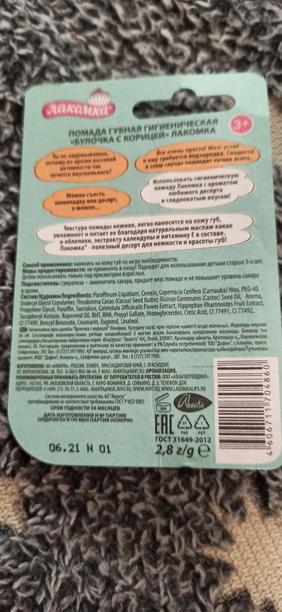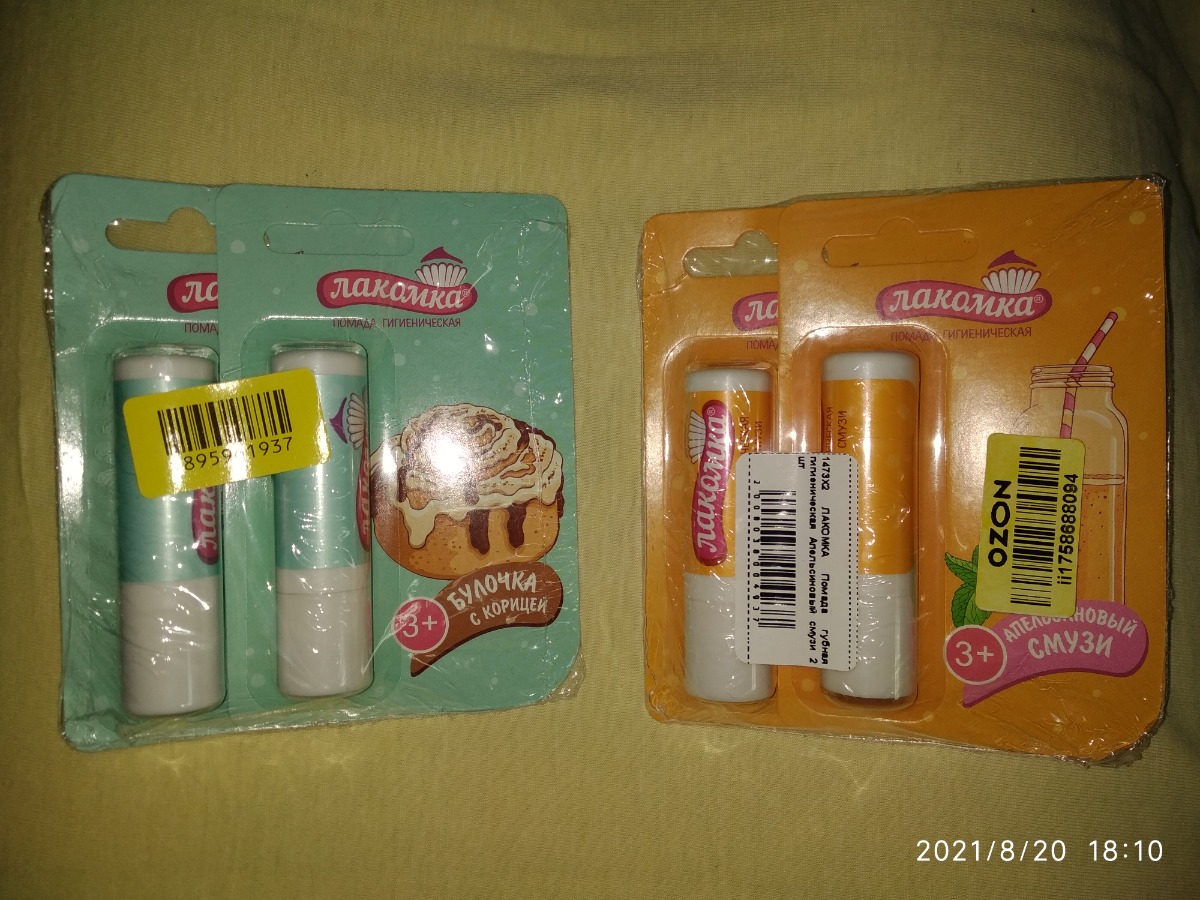 Лакомка помада гигиеническая Булочка с корицей N 1 / Комплект 4 шт.