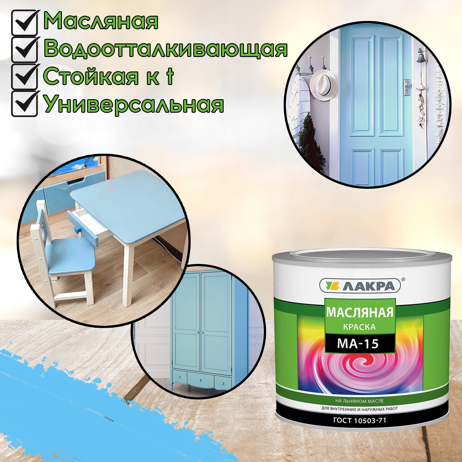 Краска Лакра На льняном масле Гладкая, до 40°, Масляная, Матовое покрытие, 0.9 кг, голубой