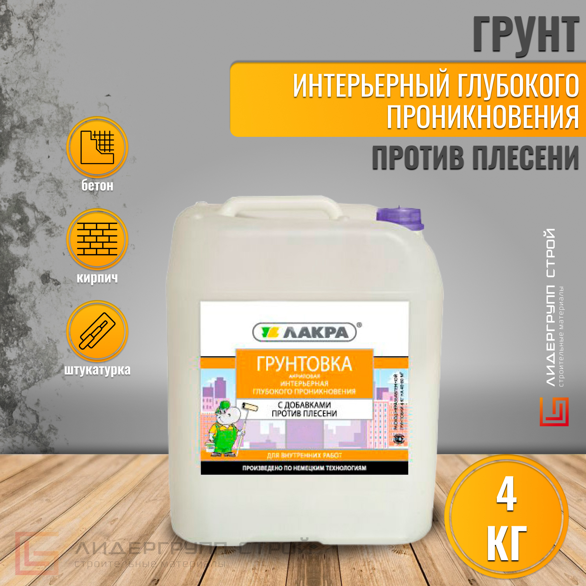Грунтовка Лакра интерьерная Глубокого проникновения 4 кг