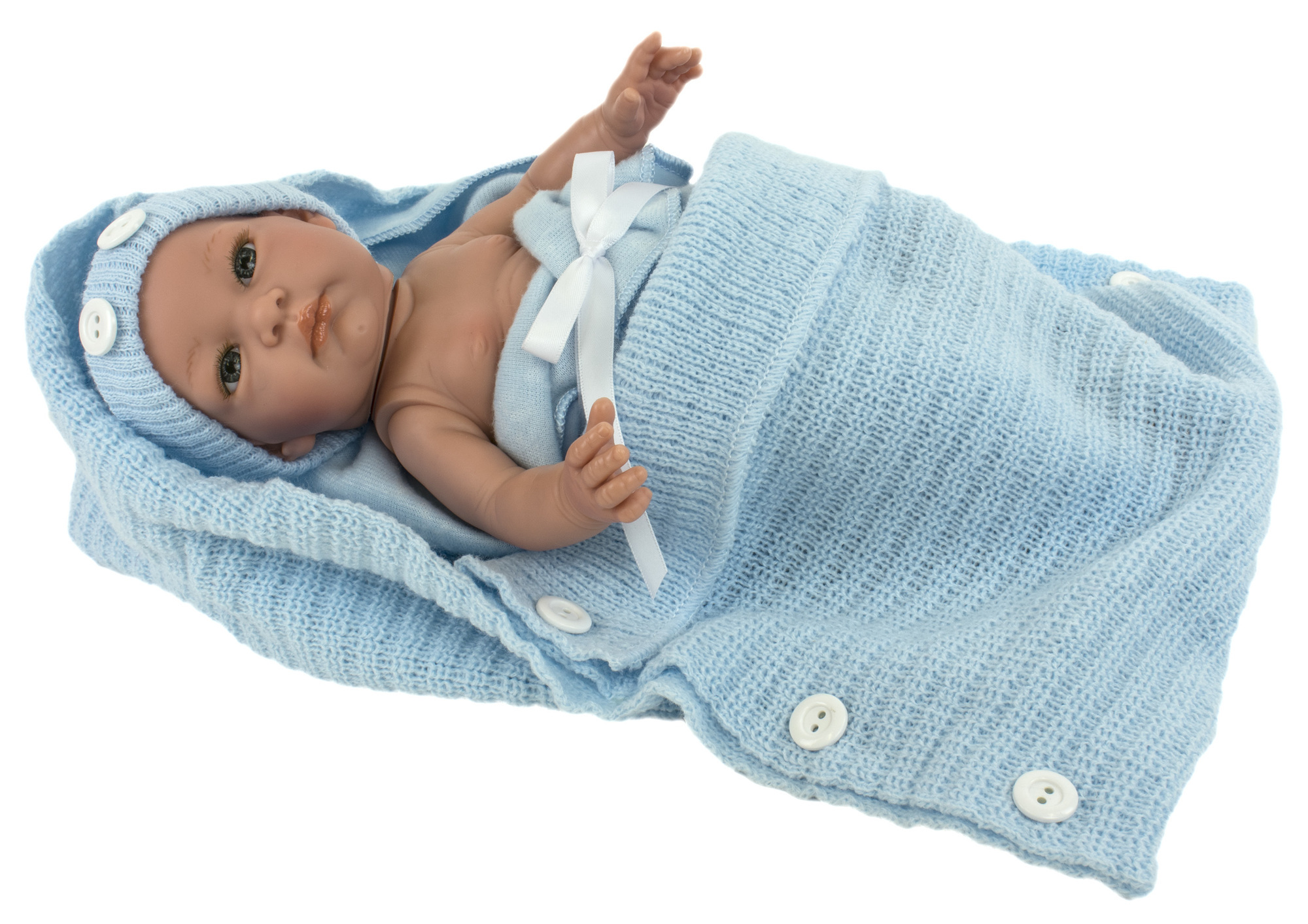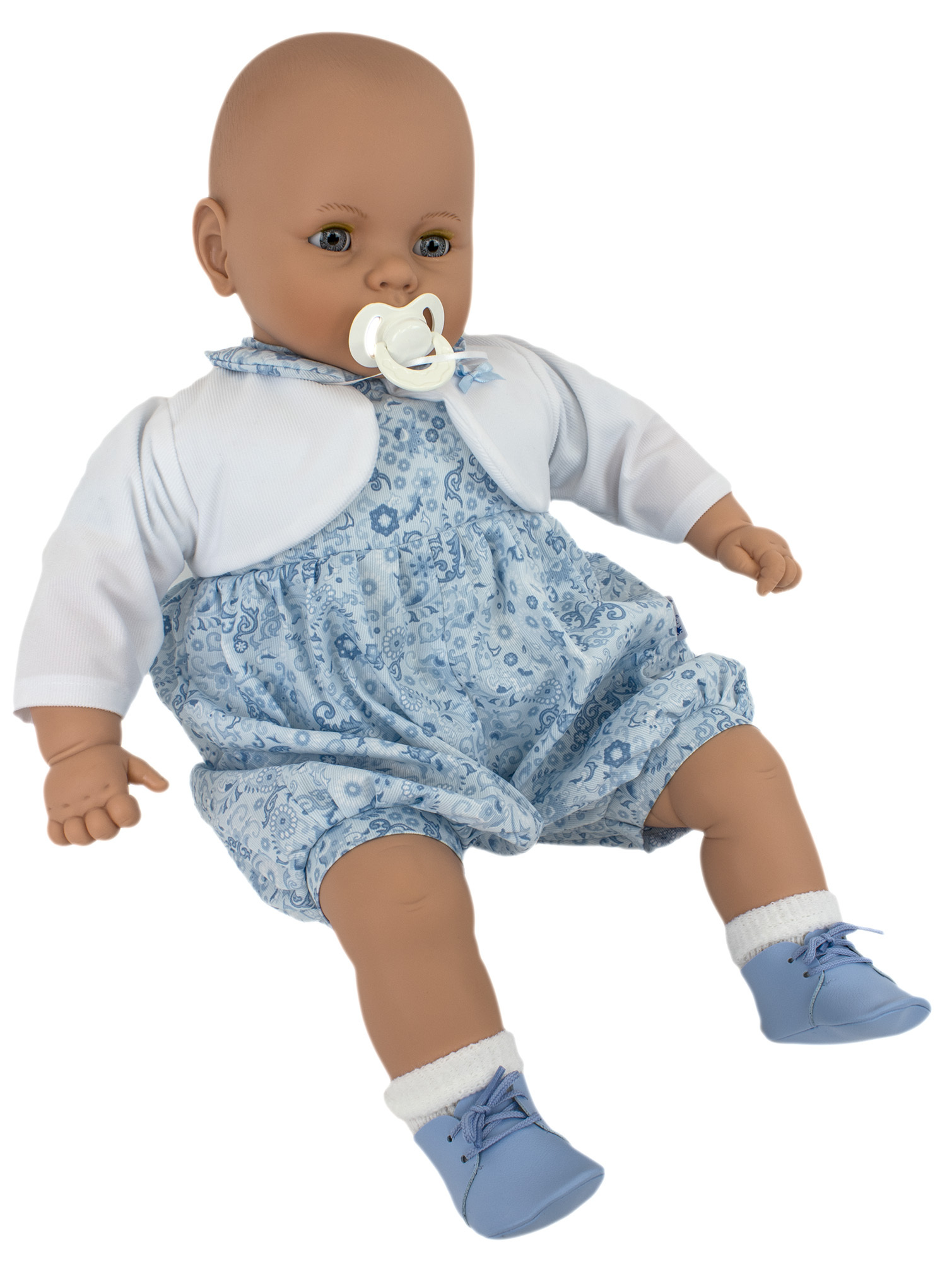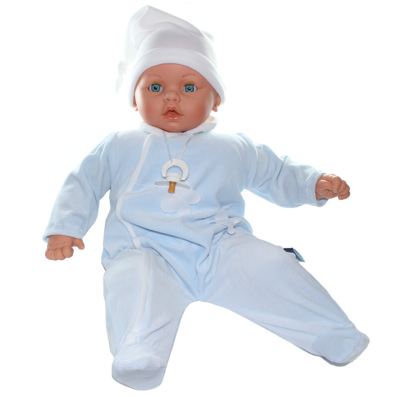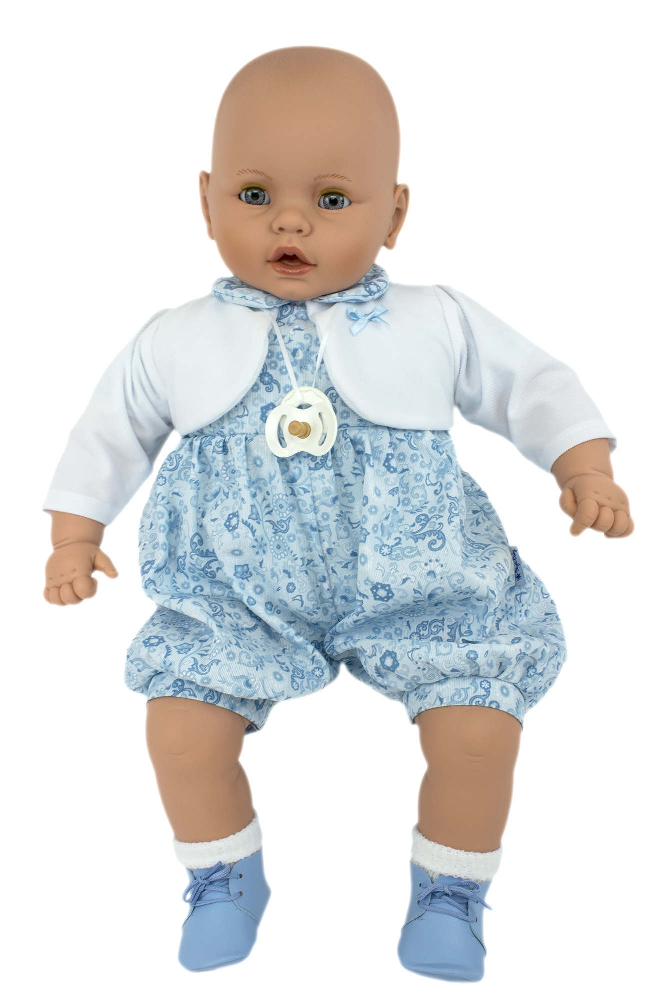 Кукла Бобо, без волос, мальчик в голубом комбинезоне и белом жакете, 65 см, Lamagik, арт. 5108