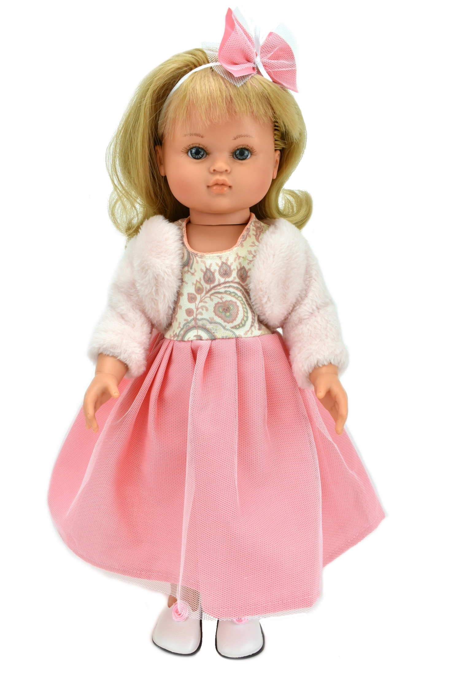 Кукла Нэни блондинка, в розовом платье и меховой кофточке, 40 см, Lamagik, арт.42018