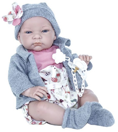 Пупс Дженни, в вязаной серой кофте, шапочке и носках, 45 см, Lamagik, арт. 50522