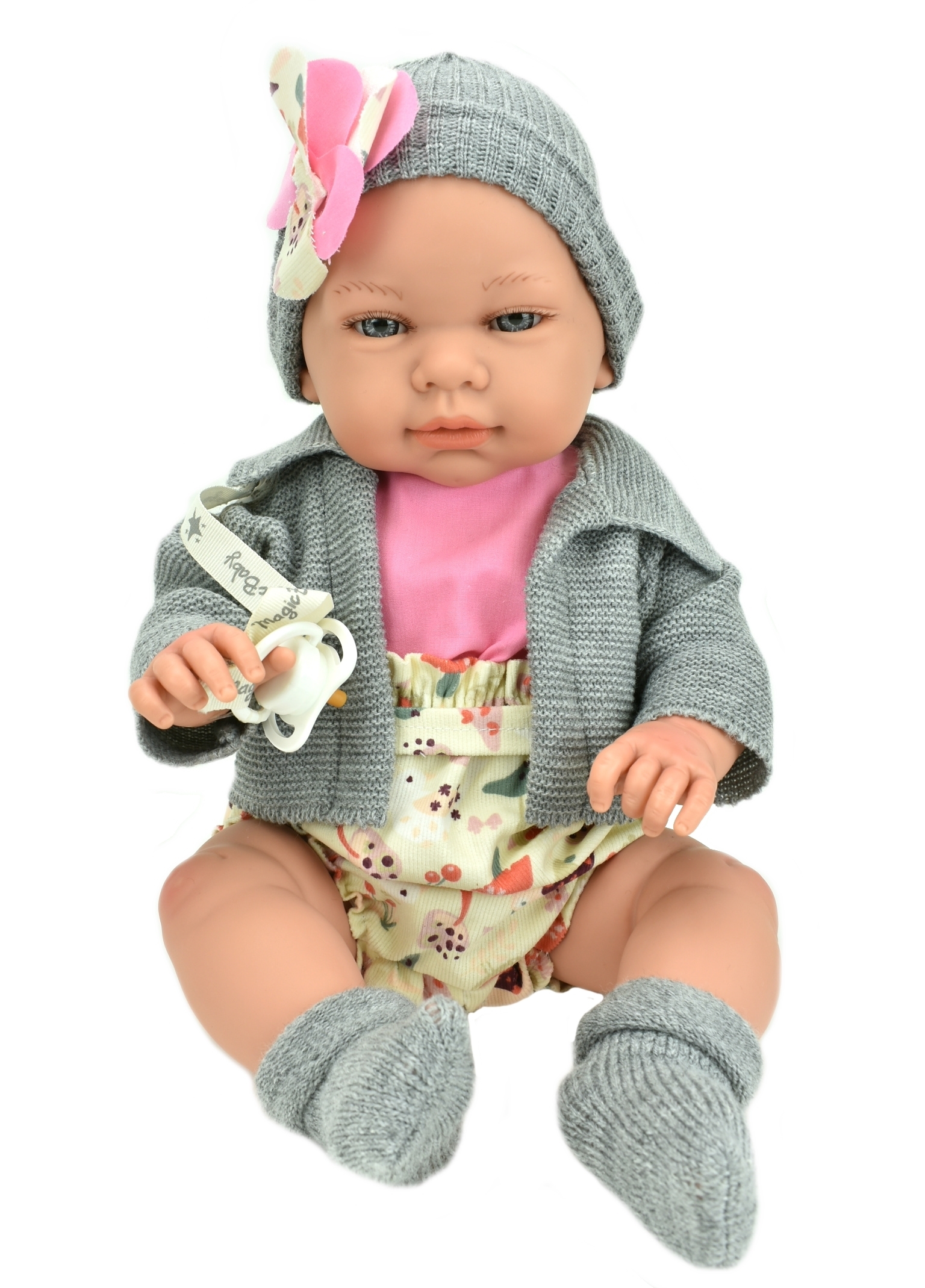 Пупс Марина, в вязаной серой кофте, шапочке и носках, 43 см, Lamagik, арт.46121