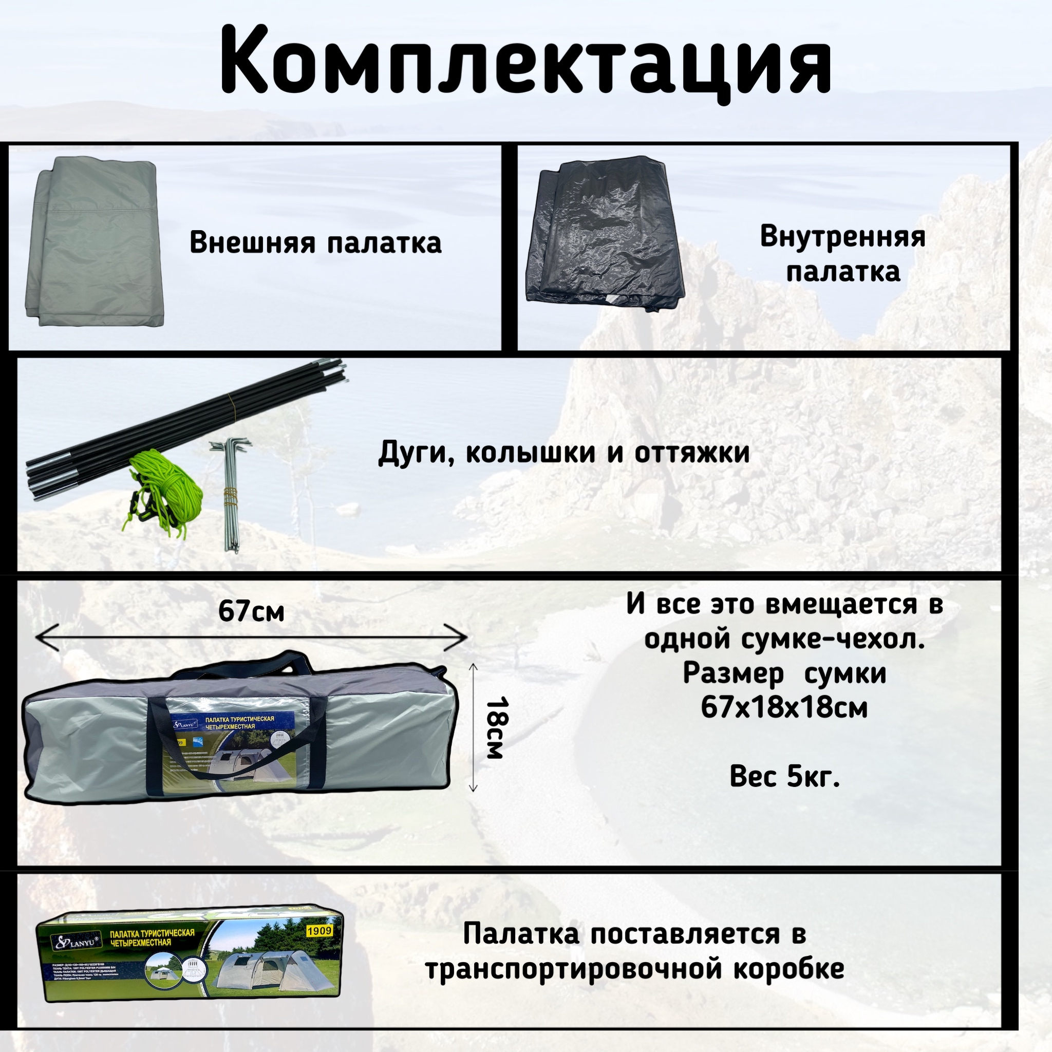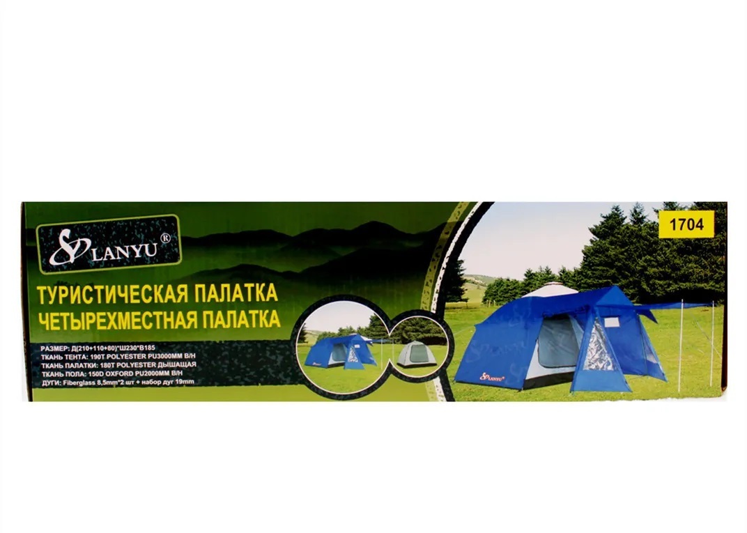 Палатка кемпинговая двухкомнатная 4 местная LANYU LY-1699, проклеенная (450х220х180 см)
