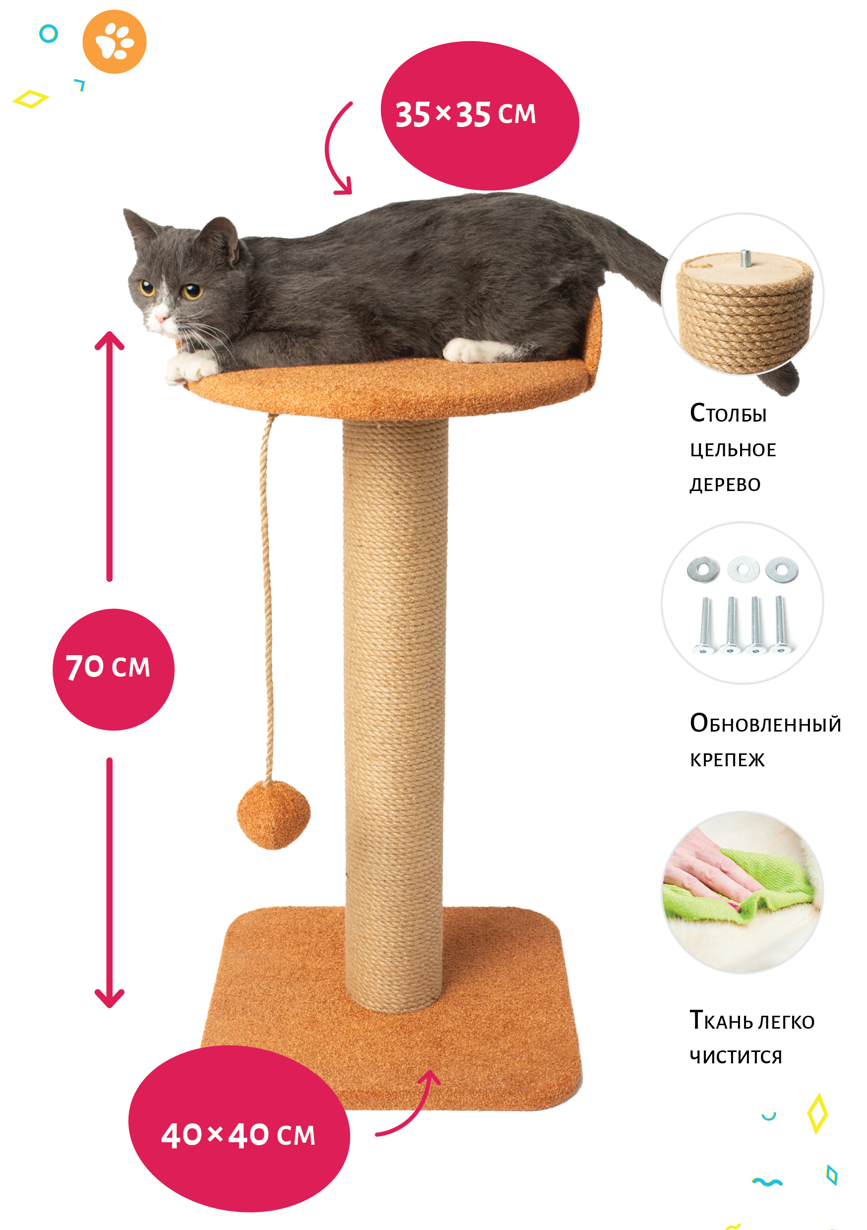 Когтеточка для кошек "Столбик с лежанкой" - 70 см
