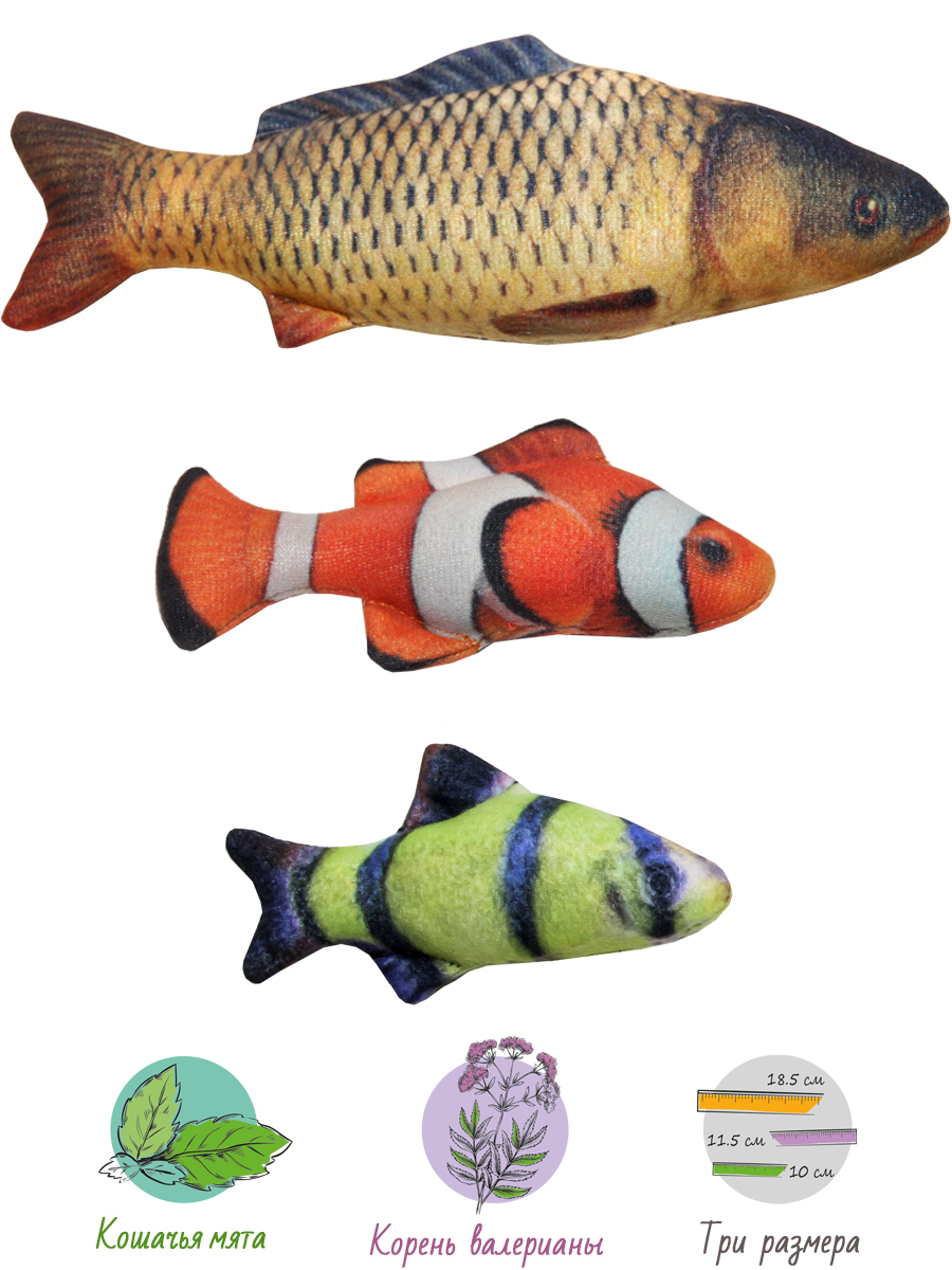 Игрушки для кошек в форме рыбы 3 шт Лапаториум