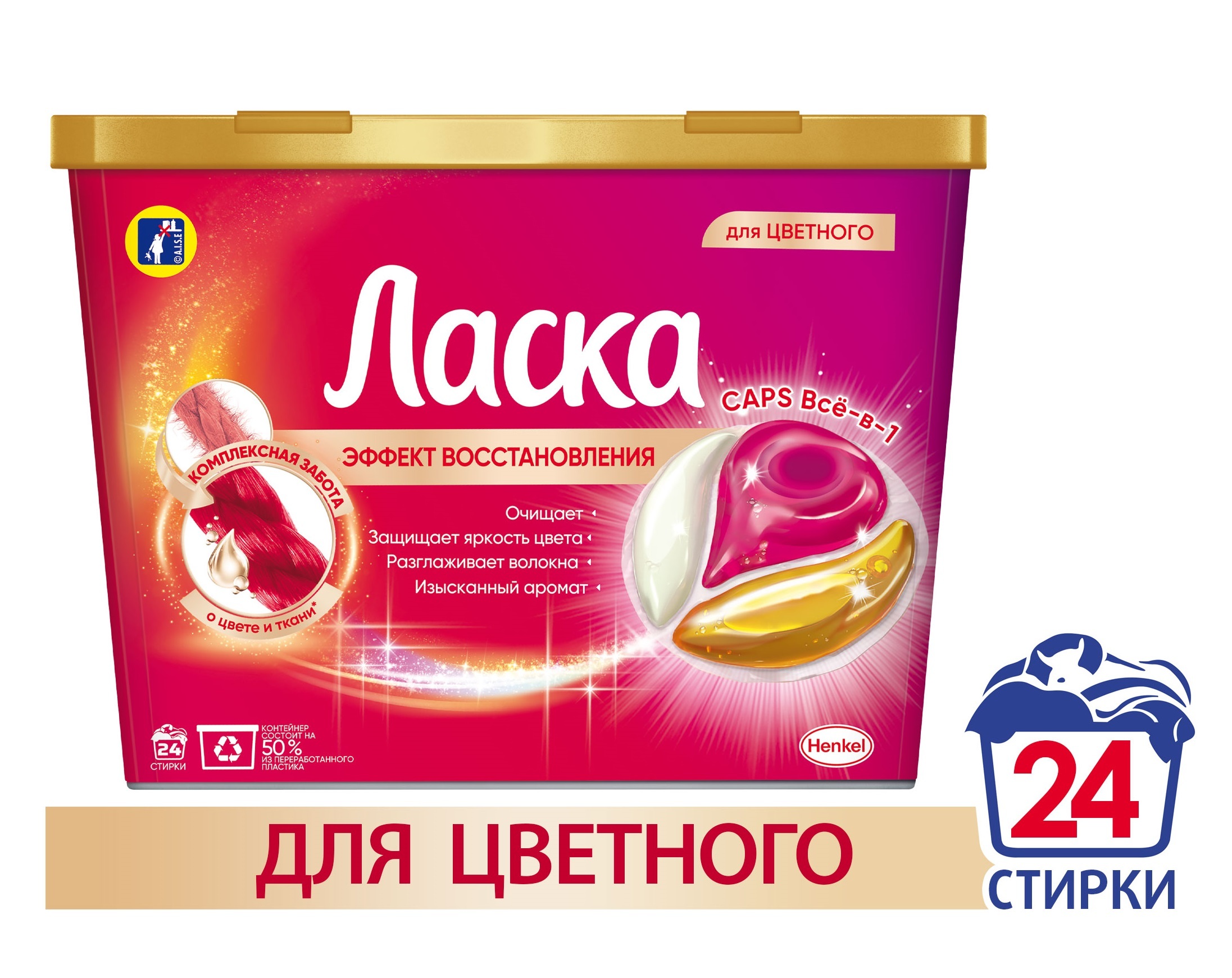 Гель-капсулы для стирки ЛАСКА, эффект восстановления темного, 10 капсул, 10 стирок