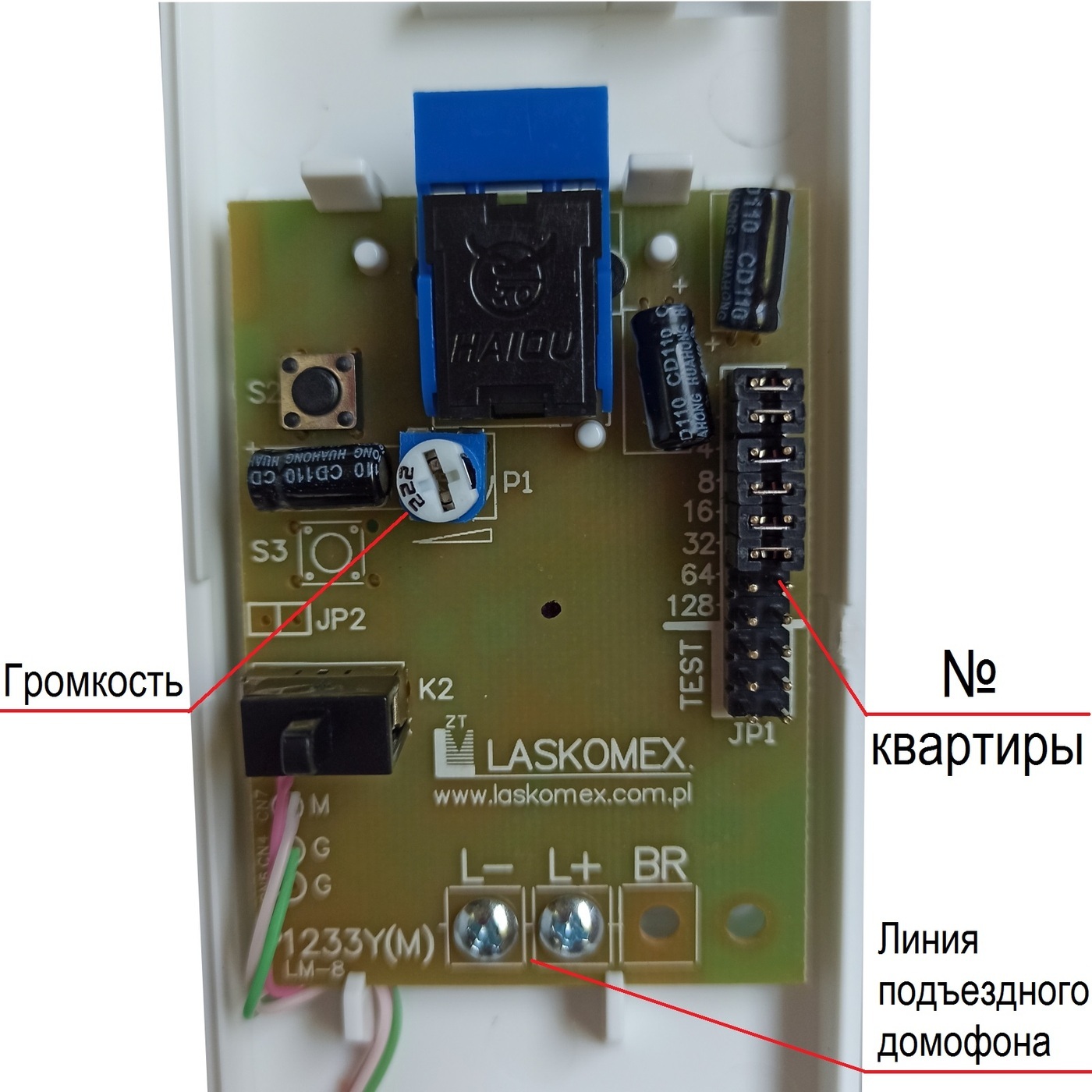 LM-8d белая трубка домофона Laskomex (цифровая система)