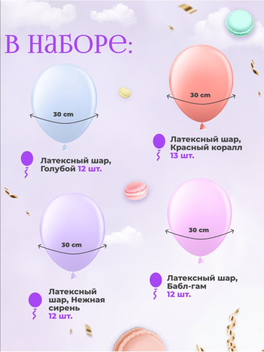 Набор 100 шаров "Macaroon" / "Макарун" , 30 см