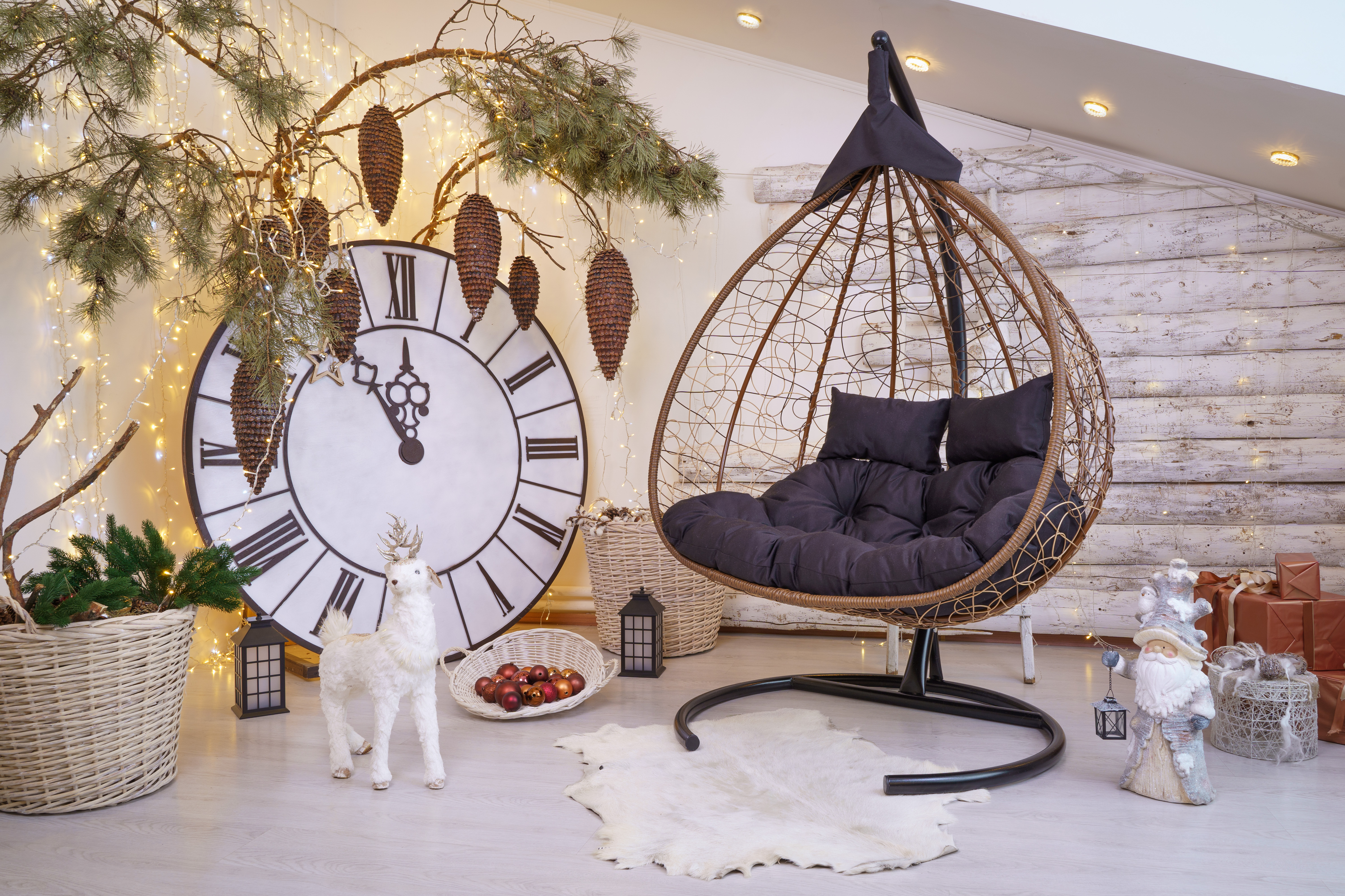 Подвесное кресло садовое, Качели-гнездо 105х120х195 см, Laura Outdoor FISHT черный (Бежевая подушка)